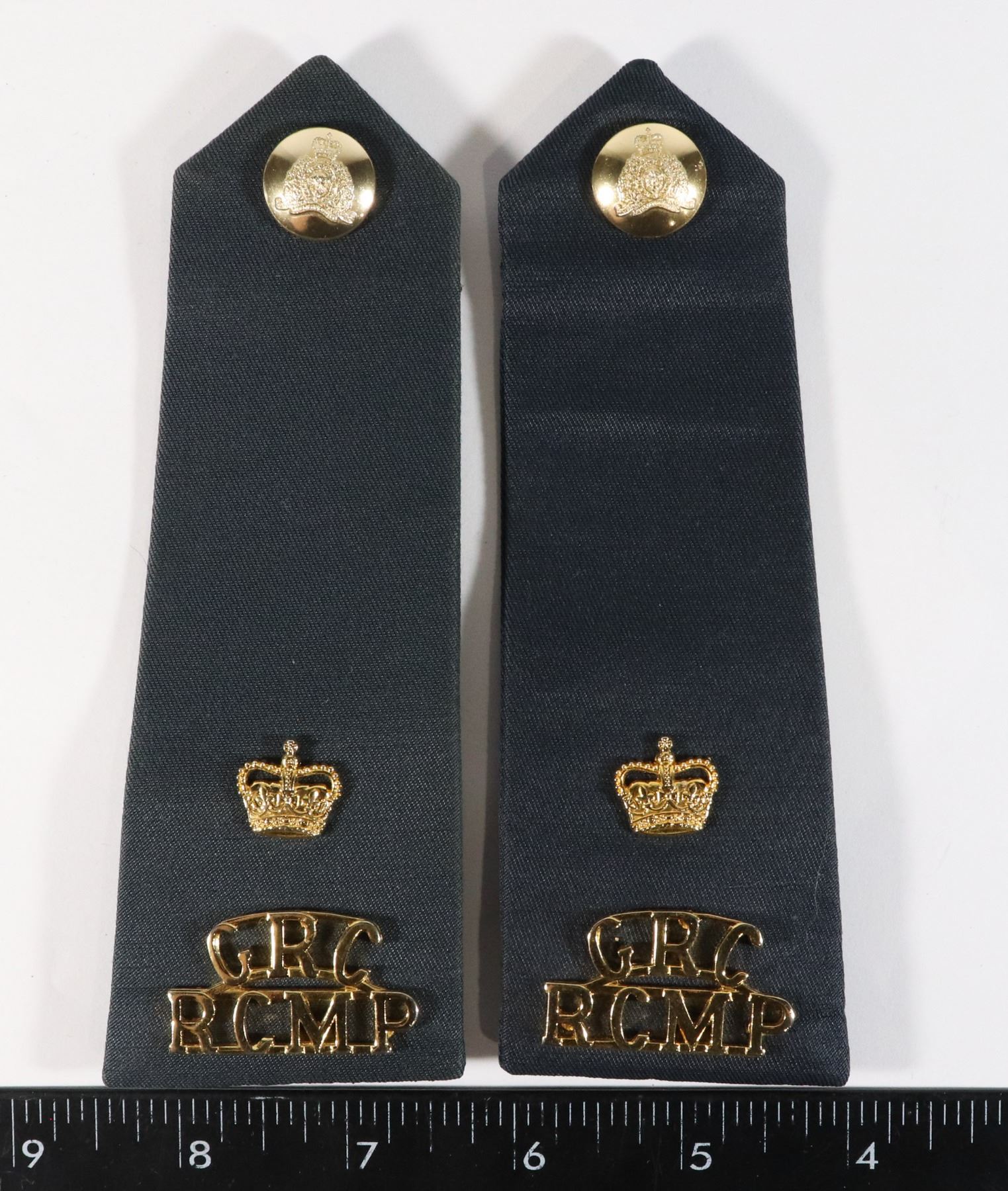 QUEEN ELIZABETH II ERA BUTTON CROWN AND SHOULDER TITLES ROYAL CANADIAN MOUNTED POLICE VINTAGE POLICE LAW ENFORCEMENT BADGE MOUNTIE INSIGNIA