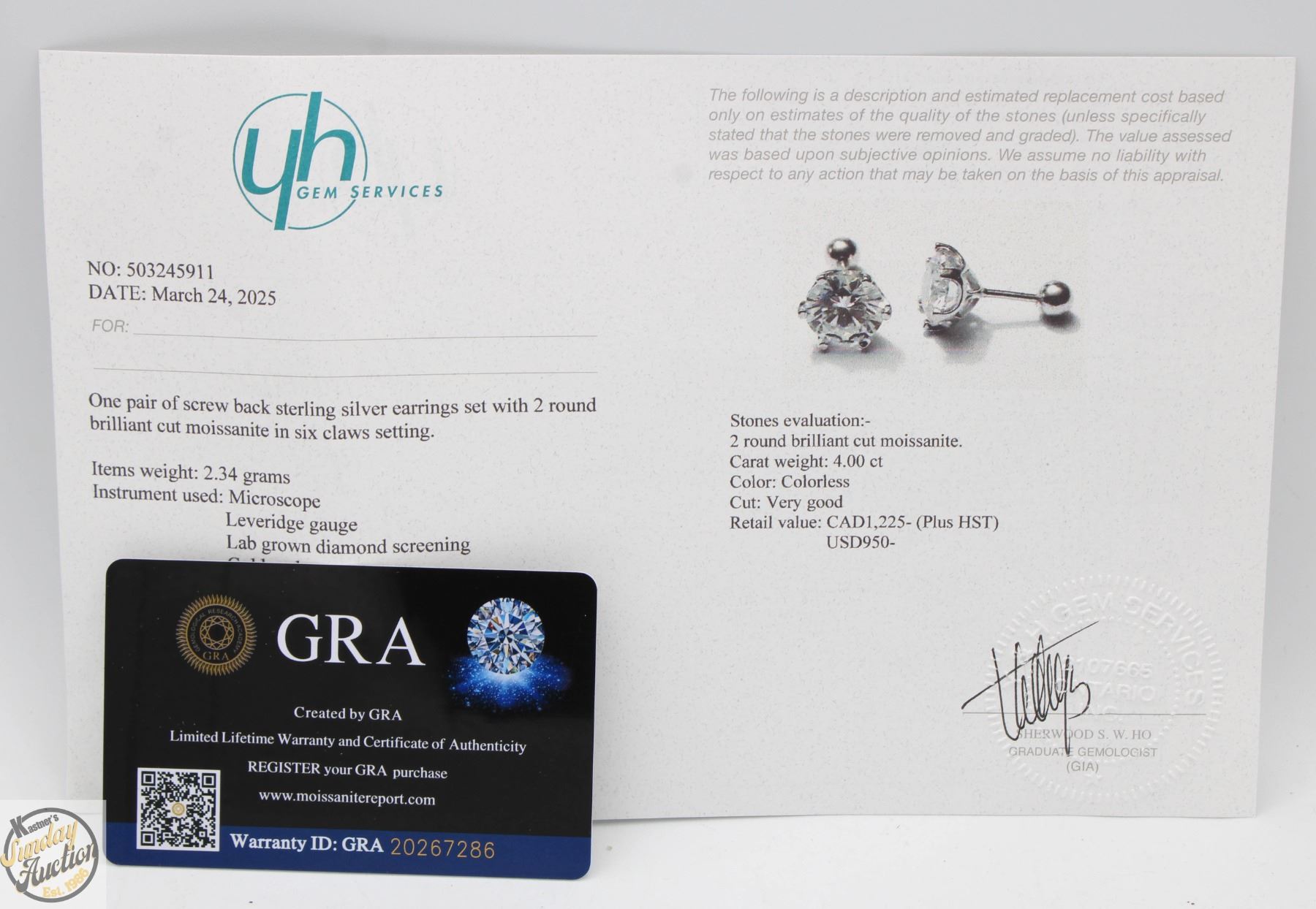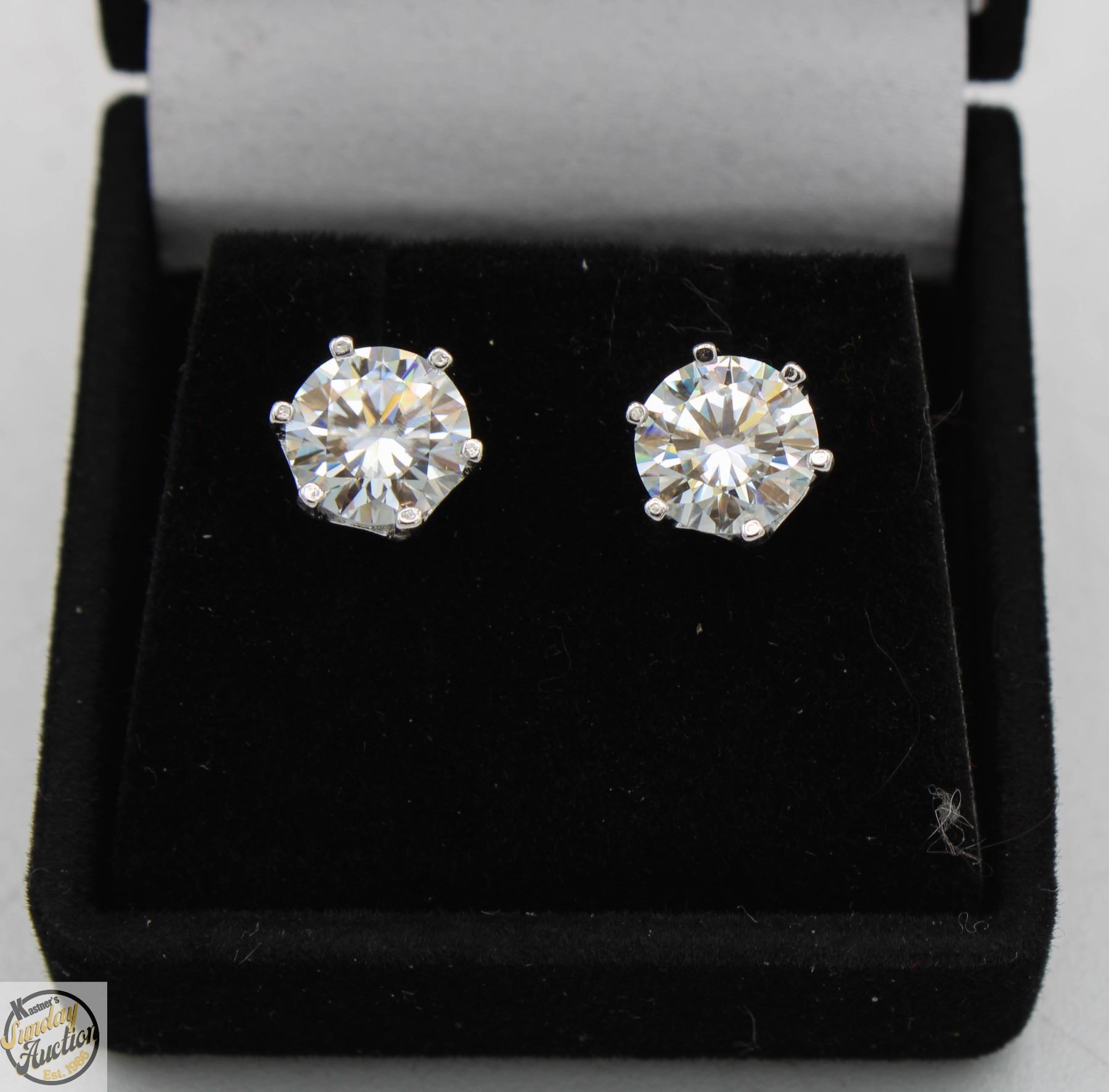 MOISSANITE STONES VVS D COLOR SET IN 6 CLAW FILAGREE HEAD SET IN 925 SILVER EARRINGS WITH SCREW BACKS RETAIL VALUE $1,225.00**ALL ITEMS MUST BE REMOVED BY 5PM SATURDAY, JUNE 7TH, 2025. ALL REMAINING ITEMS WILL BE SUBJECT TO A $6.00 PER DAY STORAGE CHARGE. ANY ITEMS REMAINING AFTER MONDAY, JUNE 23RD, 2025 WILL BE CONSIDERED FORFEITED. NO REFUNDS WILL BE ISSUED FOR FORFEITED ITEMS.** TO SCHEDULE A PICK UP APPOINTMENT CLICK HERE