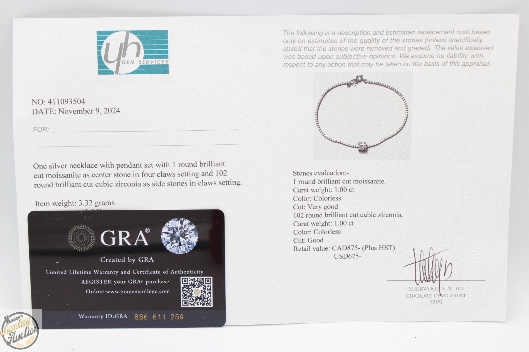 MOISSANITE STONE VVS D COLOR SET IN 4 CLAW BASKET HEAD WITH 102 ROUND BRILLIANT CUT CUBIC ZIRCONIA SET IN 4 CLAW HEADS IN BRACELET SET IN 925 SILVER BRACELET RETAIL VALUE $875.00 **ALL ITEMS MUST BE REMOVED BY 5PM SATURDAY, JUNE 14TH 2025. ALL REMAINING ITEMS WILL BE SUBJECT TO A $6.00 PER DAY STORAGE CHARGE. ANY ITEMS REMAINING AFTER MONDAY, JUNE 30TH, 2025 WILL BE CONSIDERED FORFEITED. NO REFUNDS WILL BE ISSUED FOR FORFEITED ITEMS. TO SCHEDULE A PICK UP APPOINTMENT CLICK HERE