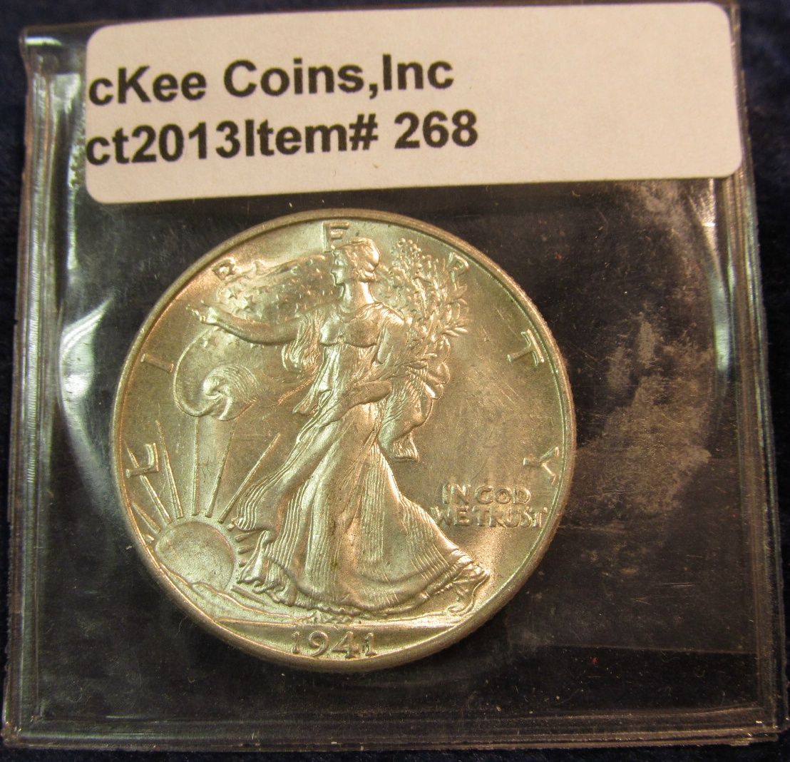 268. 1941 D Walking Liberty Half Dollar. MS 63. Redbook value $63.00.