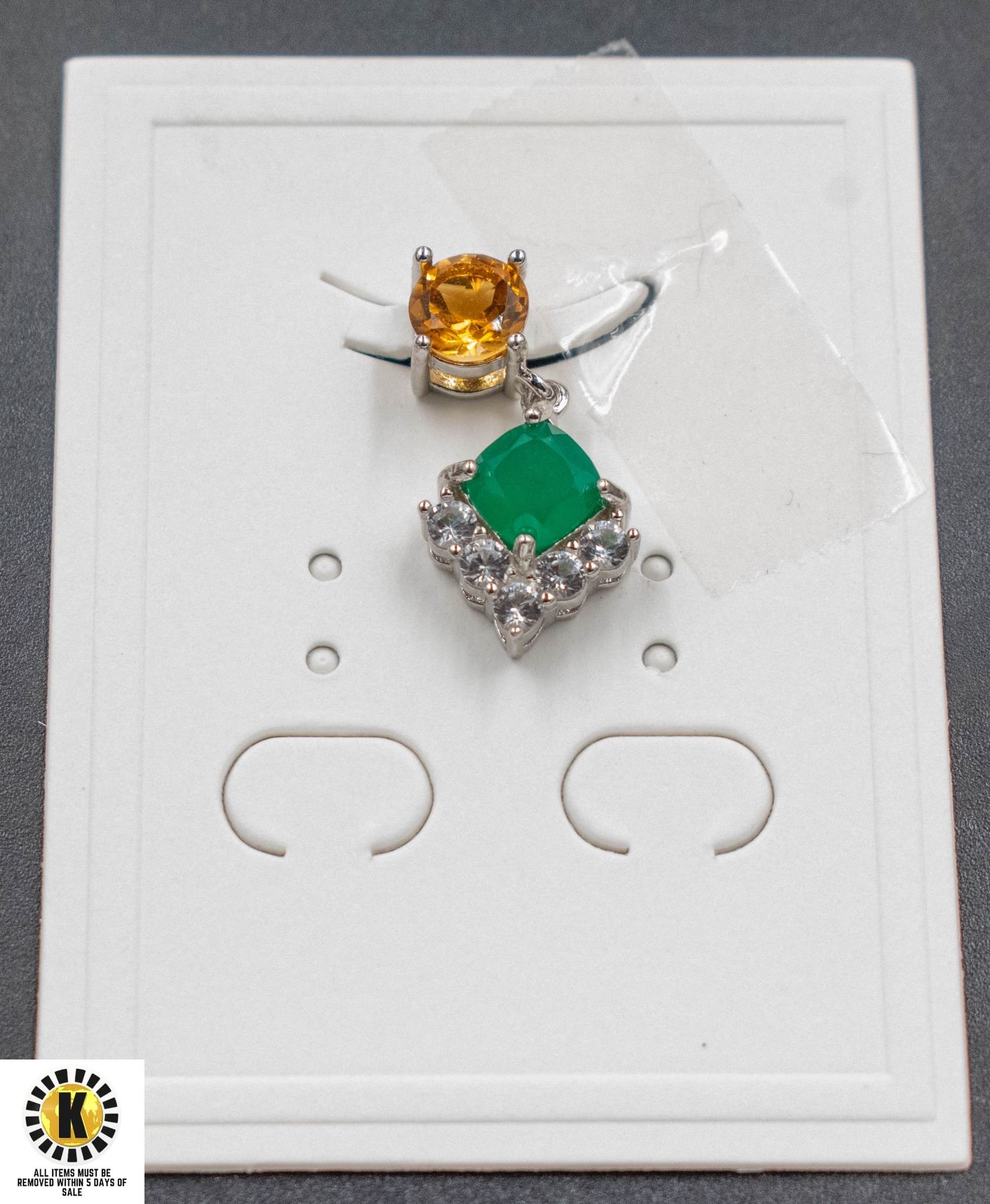 #268-NATURAL GREEN AGET 6 X6 & CZ,CITRINE PENDANT