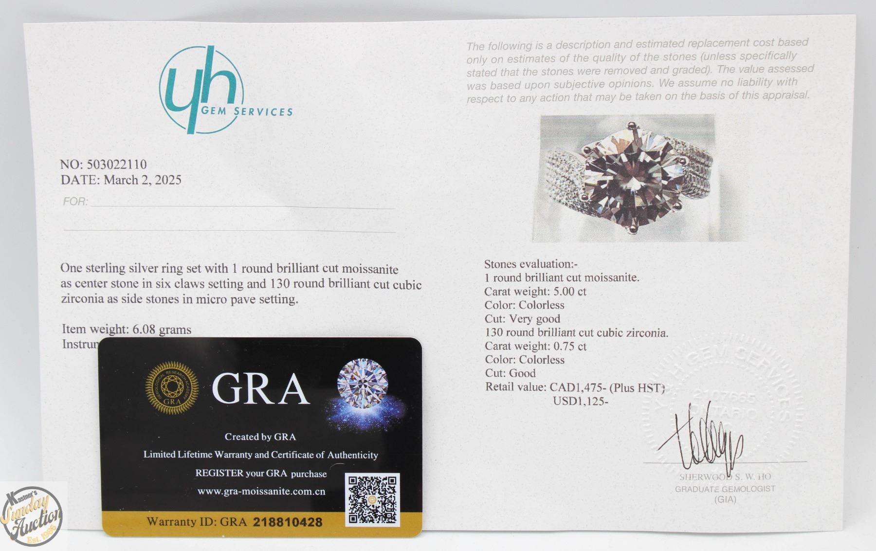 MOISSANITE STONE VVS D COLOR SET WITH 130 ROUND BRILLIANT CUT CZ?S SET IN 925 SILVER RING SIZE 7 RETAIL VALUE $1,475.00 **ALL ITEMS MUST BE REMOVED BY 5PM SATURDAY, JUNE 14TH 2025. ALL REMAINING ITEMS WILL BE SUBJECT TO A $6.00 PER DAY STORAGE CHARGE. ANY ITEMS REMAINING AFTER MONDAY, JUNE 30TH, 2025 WILL BE CONSIDERED FORFEITED. NO REFUNDS WILL BE ISSUED FOR FORFEITED ITEMS. TO SCHEDULE A PICK UP APPOINTMENT CLICK HERE