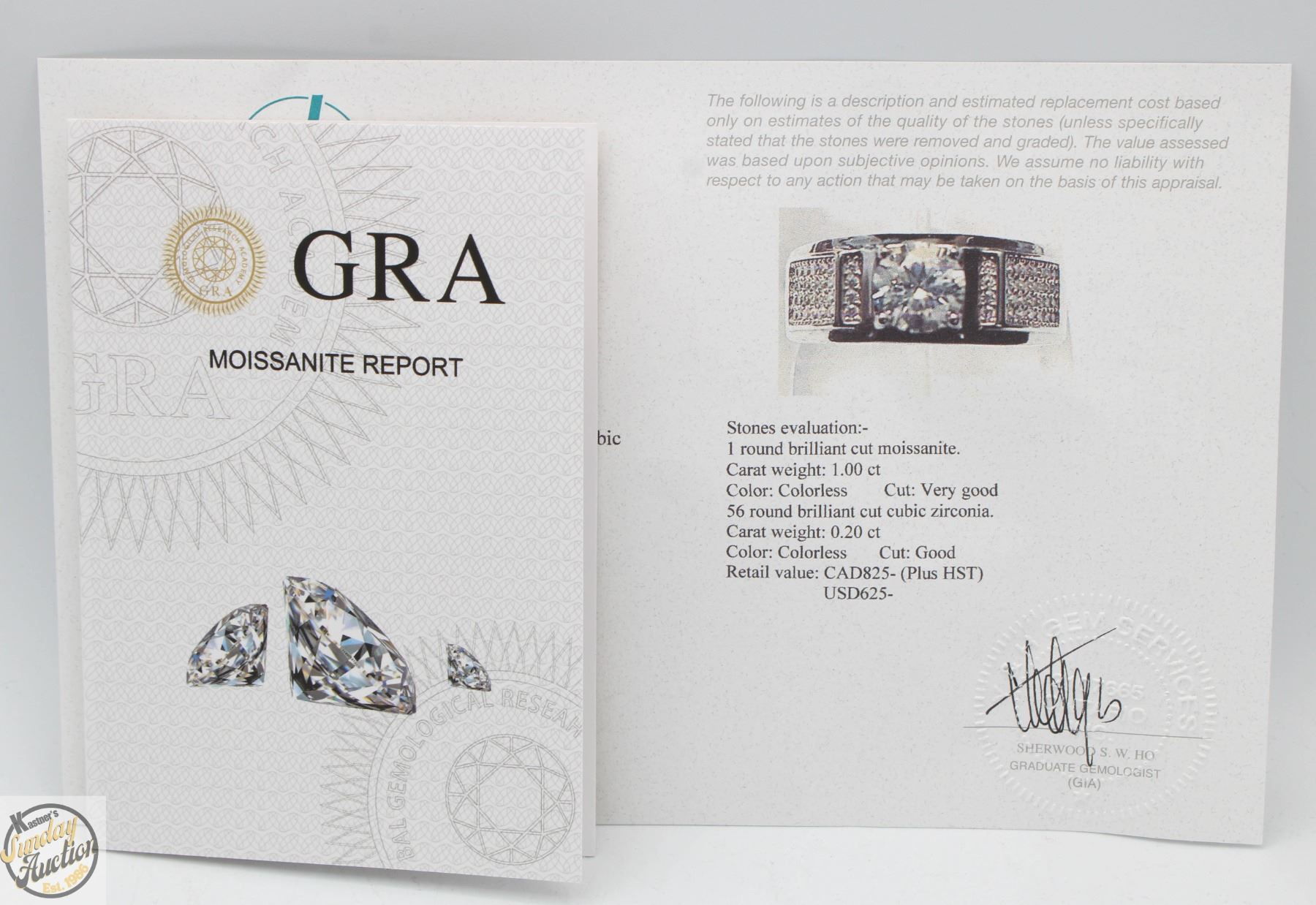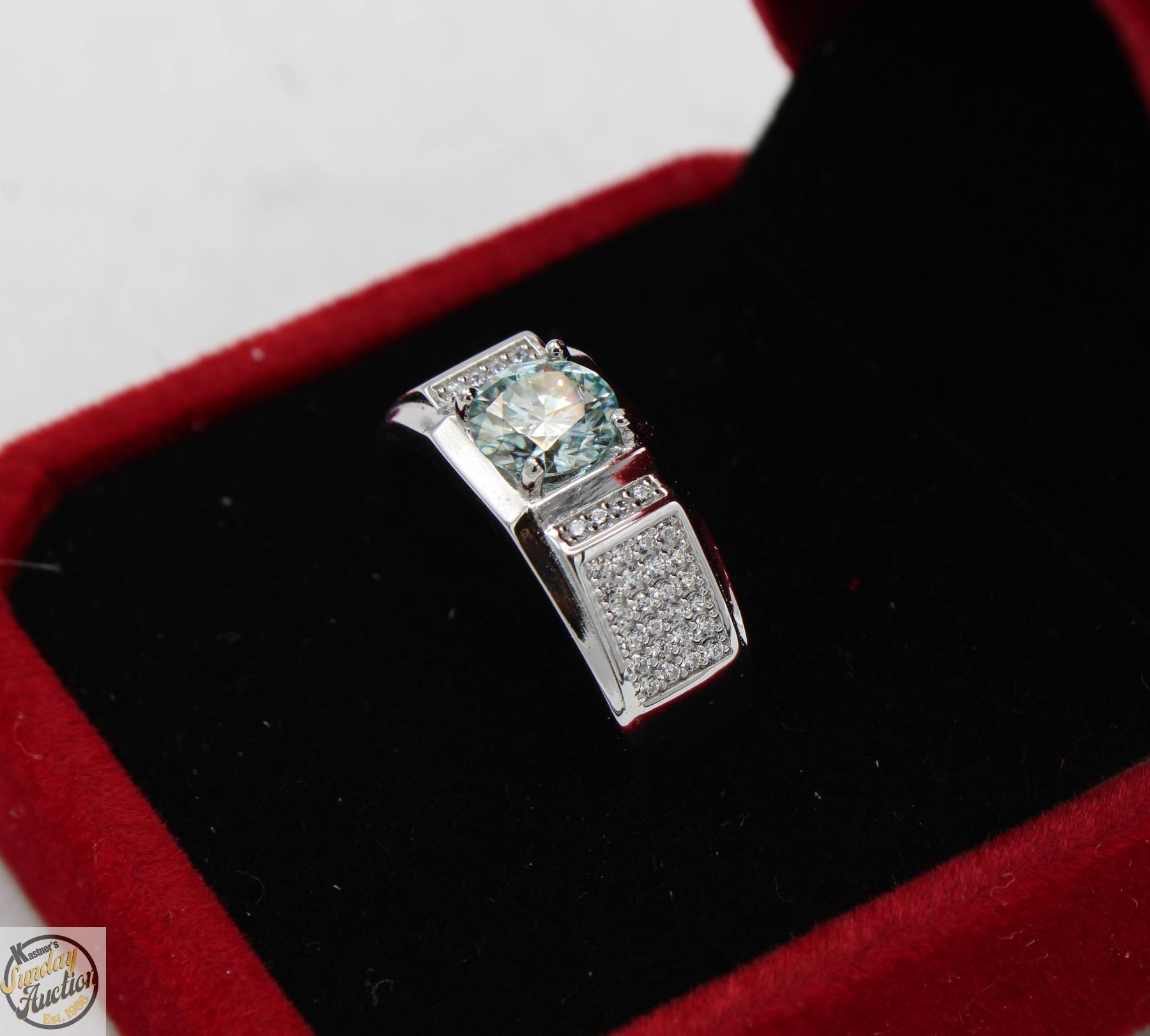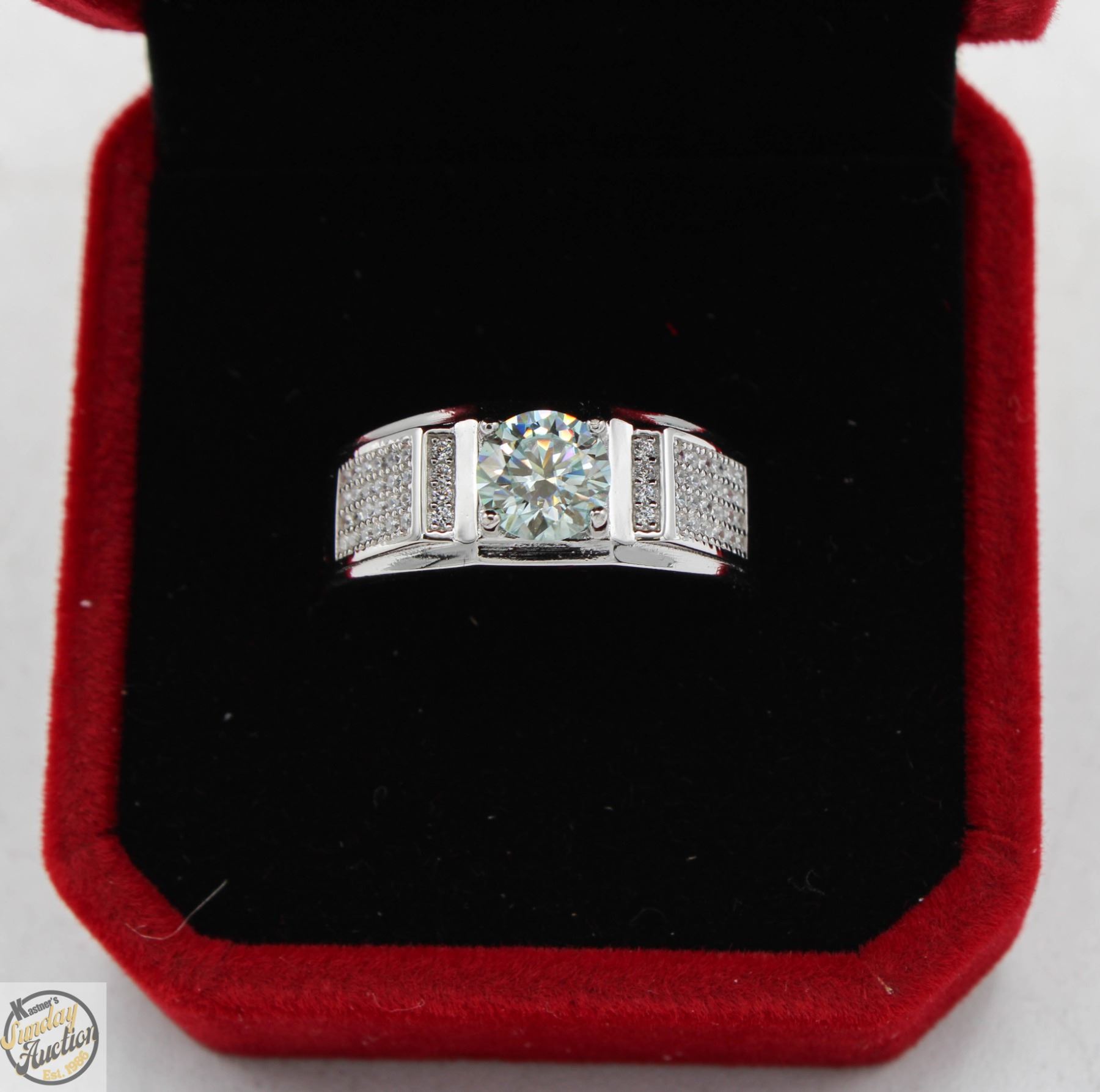 MOISSANITE STONE VVS D COLOR SET WITH 56 ROUND BRILLIANT CUT CUBIC ZIRCONIA SET IN SHANKS SET IN 925 SILVER RING SIZE 10 RETAIL VALUE $825.00 **ALL ITEMS MUST BE REMOVED BY 5PM SATURDAY, JUNE 14TH 2025. ALL REMAINING ITEMS WILL BE SUBJECT TO A $6.00 PER DAY STORAGE CHARGE. ANY ITEMS REMAINING AFTER MONDAY, JUNE 30TH, 2025 WILL BE CONSIDERED FORFEITED. NO REFUNDS WILL BE ISSUED FOR FORFEITED ITEMS. TO SCHEDULE A PICK UP APPOINTMENT CLICK HERE