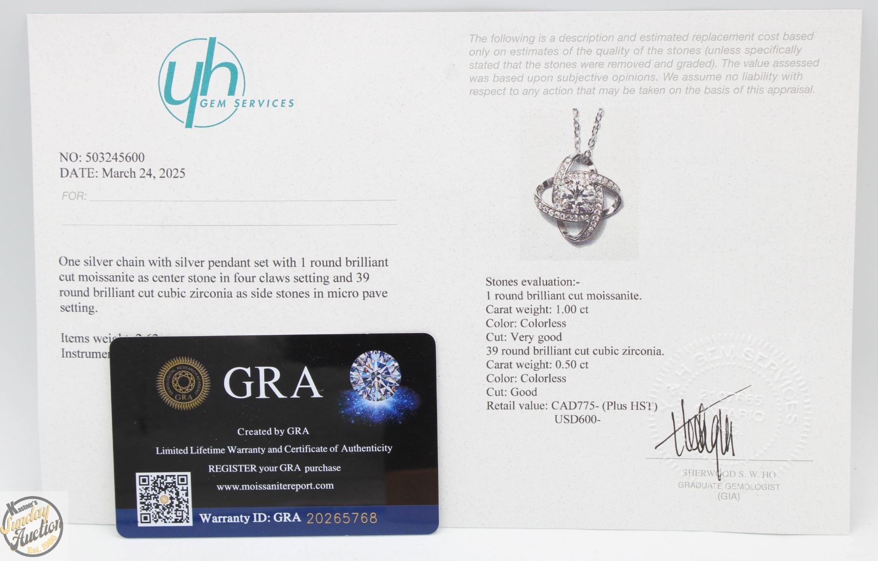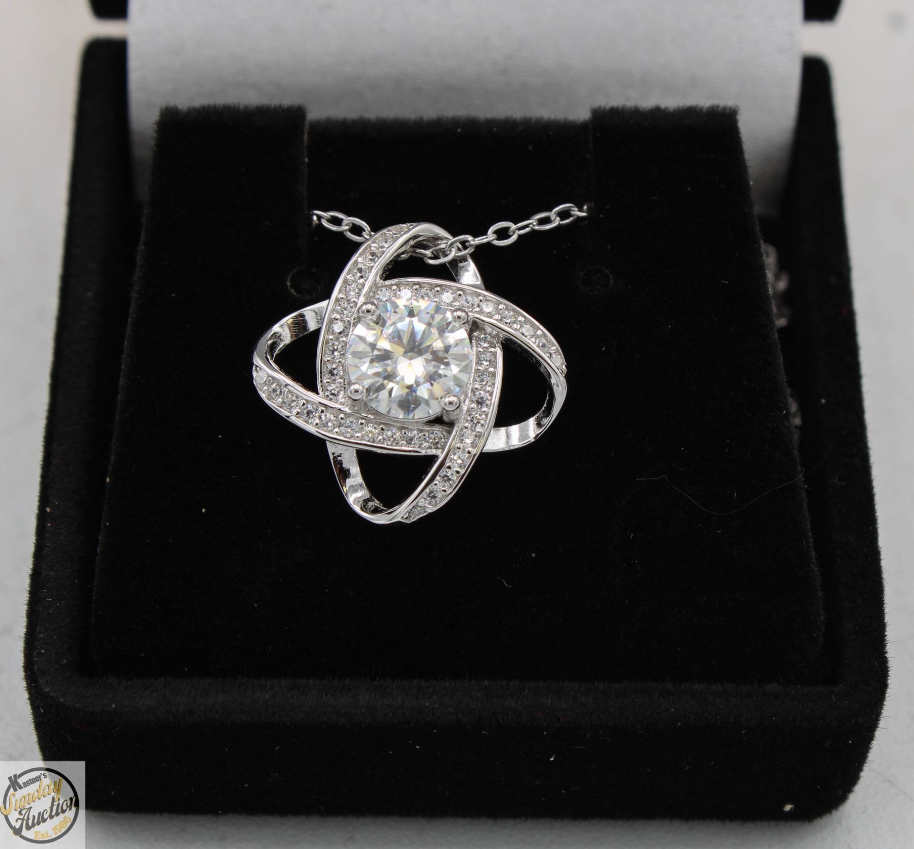 MOISSANITE STONE VVS D COLOR WITH 39 ROUND BRILLIANT CUT CUBIC ZIRCONIA SET DUAL OVAL HALOS AROUND CENTER SET IN 925 SILVER PENDANT RETAIL VALUE $775.00 **ALL ITEMS MUST BE REMOVED BY 5PM SATURDAY, JUNE 14TH 2025. ALL REMAINING ITEMS WILL BE SUBJECT TO A $6.00 PER DAY STORAGE CHARGE. ANY ITEMS REMAINING AFTER MONDAY, JUNE 30TH, 2025 WILL BE CONSIDERED FORFEITED. NO REFUNDS WILL BE ISSUED FOR FORFEITED ITEMS. TO SCHEDULE A PICK UP APPOINTMENT CLICK HERE