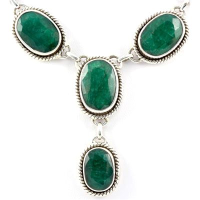 269.5ctw Beautiful Cut Emerald Silver Necklace **|**|** ; MSRP: $2600