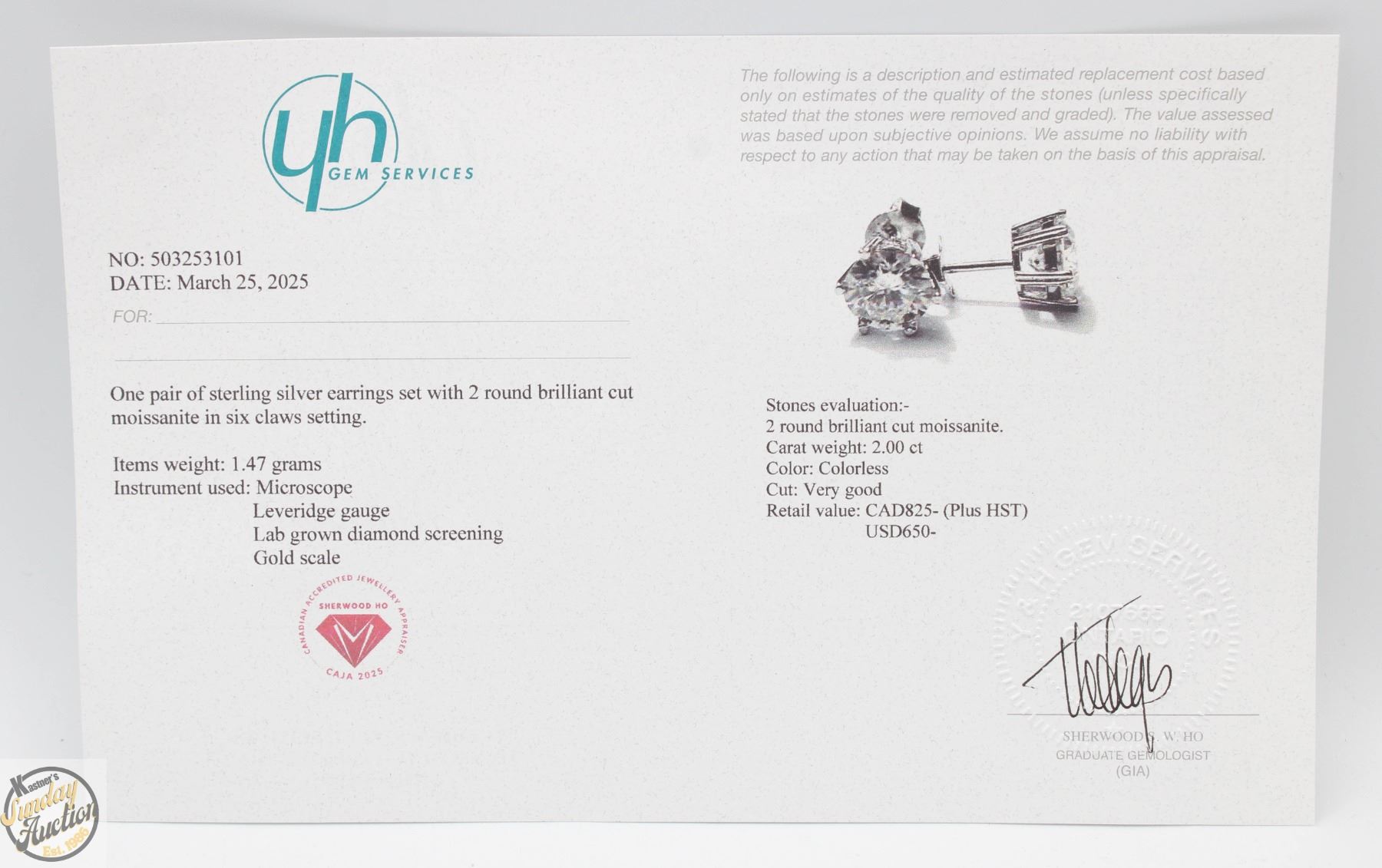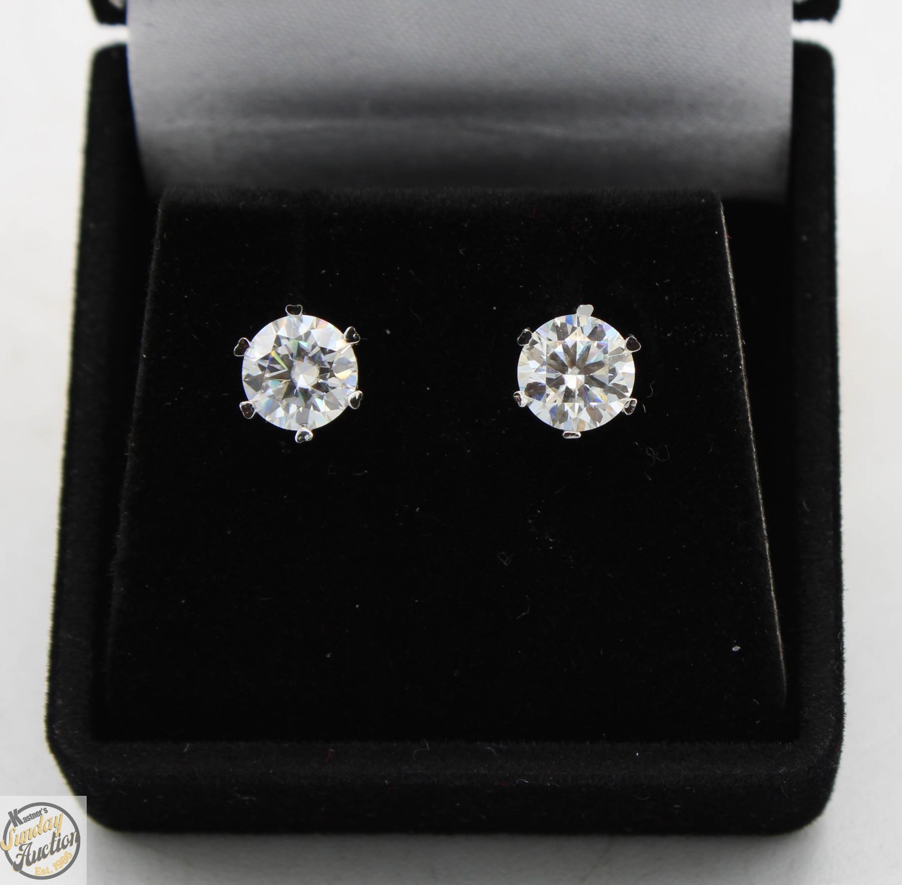 MOISSANITE STONES VVS D COLOR SET IN 6 CLAW BASKET HEAD SET IN 925 SILVER EARRINGS RETAIL VALUE $825.00 **ALL ITEMS MUST BE REMOVED BY 5PM SATURDAY, JUNE 14TH 2025. ALL REMAINING ITEMS WILL BE SUBJECT TO A $6.00 PER DAY STORAGE CHARGE. ANY ITEMS REMAINING AFTER MONDAY, JUNE 30TH, 2025 WILL BE CONSIDERED FORFEITED. NO REFUNDS WILL BE ISSUED FOR FORFEITED ITEMS. TO SCHEDULE A PICK UP APPOINTMENT CLICK HERE