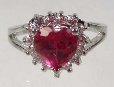 2698 - 14K WHITE GOLD PLATED RING W/ RED RUBY & WHITE TOPAZ - SIZE 8
