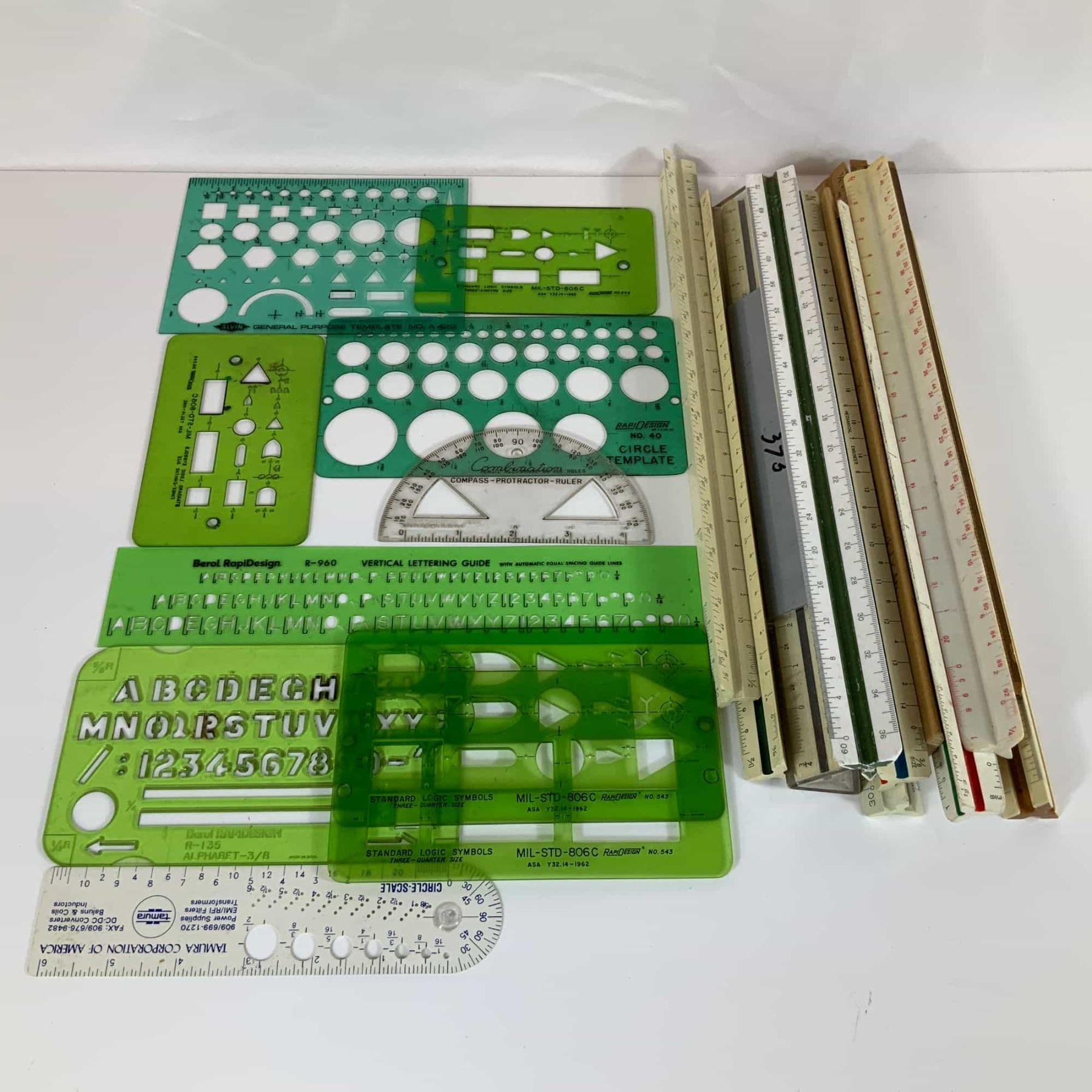 26pc Drafting and Engineering Instrument Grouping Including French Curves, Templates, Rulers, and T-