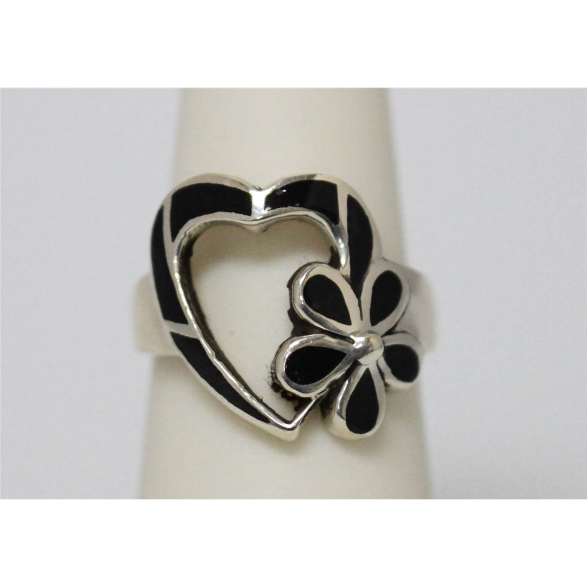 27.05 CTW BLACK STAR RING .925 STERLING SILVER **|**|** 27.05 CTW BLACK STAR HEART AND FLOWER SHAPE RING .925 STERLING SILVER