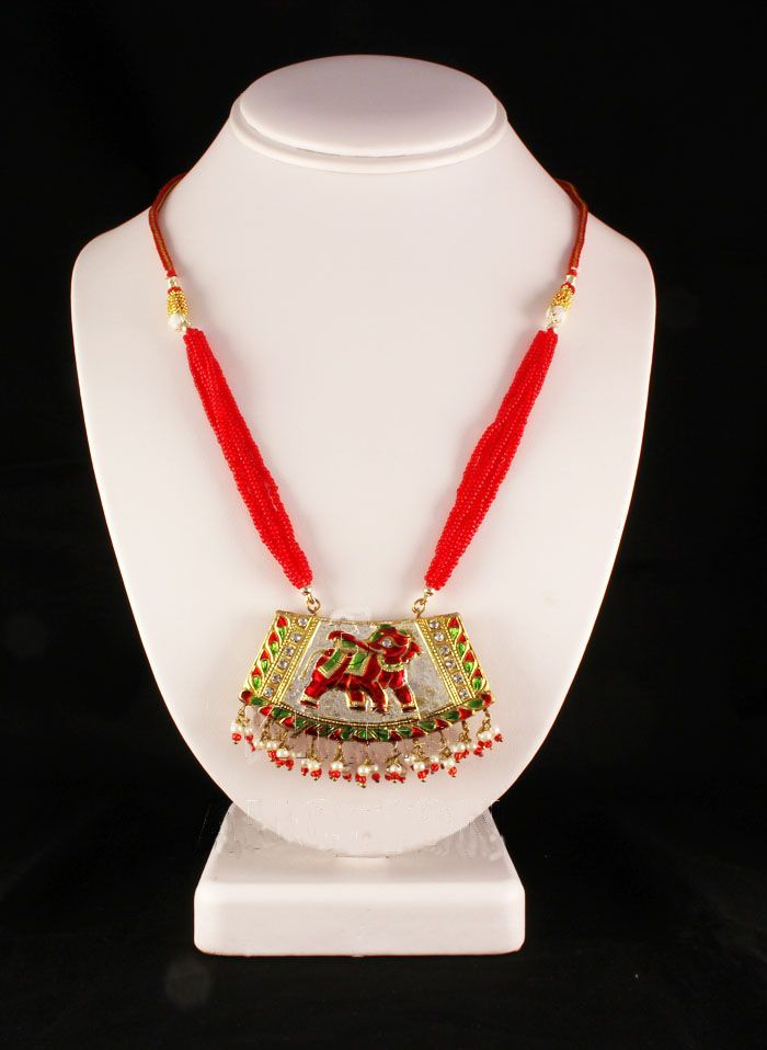 27.14GRAM INDIAN HANDMADE LAKH FASHION NECKLACE **|**|** Weight(g): 27.14 ; Metal: SILVER PLATEDLAKH ; Length: 24 INCHES ; MSRP: $300