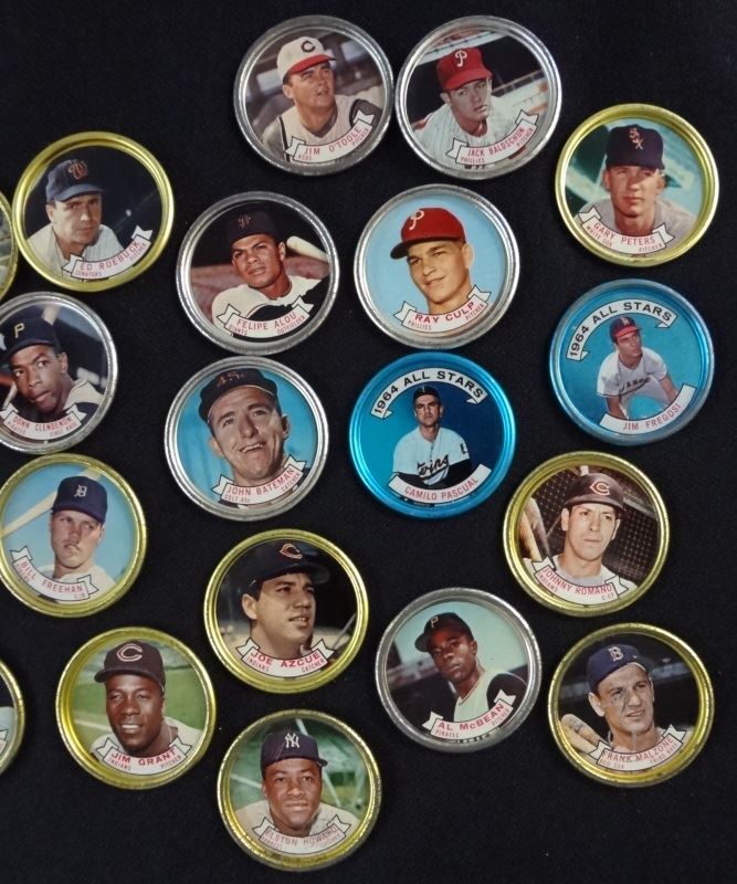 27 - 1964 TOPPS COINS - KOUFAX, KALINE, MANTLE, CEPEDA, MAZEROSKI, KILLEBREW and
