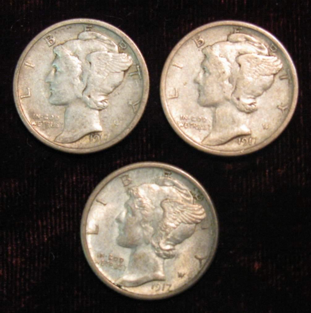 27. (3) 1917 S Mercury Dimes. EF 40. Redbook Value $36.00