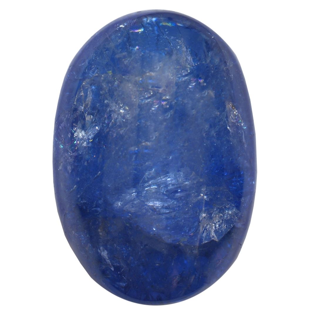 One oval cut natural tanzanite, measuring 23.00 x 15.80 x 8.20mm, exact weight 27.36ct., clarity is heavily included, type I, dark, very slightly grayish, blue color, (GIA B 7/3), cut is good. Transmitting light somewhat diffusely, transparent to translucent. Naturally occurring internal & external characteristics are present. Indications of heat treatment. Westfield Appraised at $2,625.00.