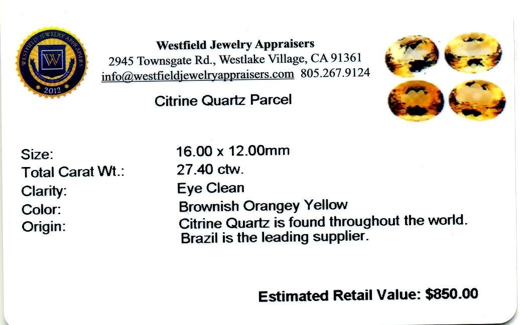 27.4cts Oval Cut Citrine Quartz Parcel. Westfield Appraised at $850.00.