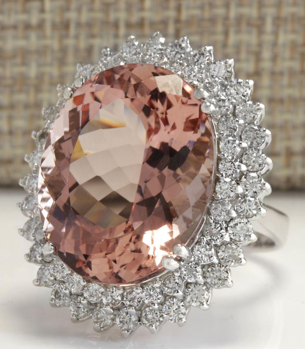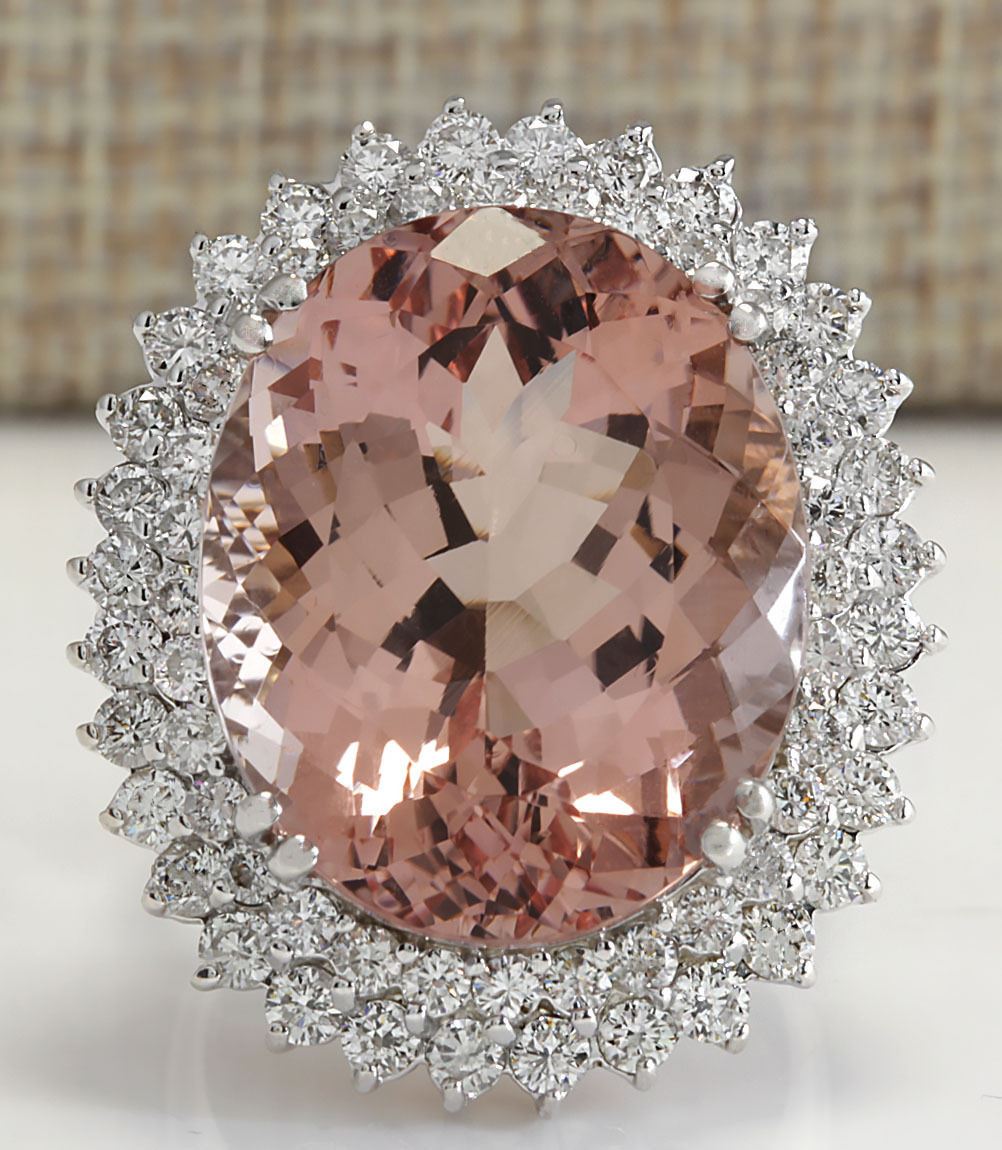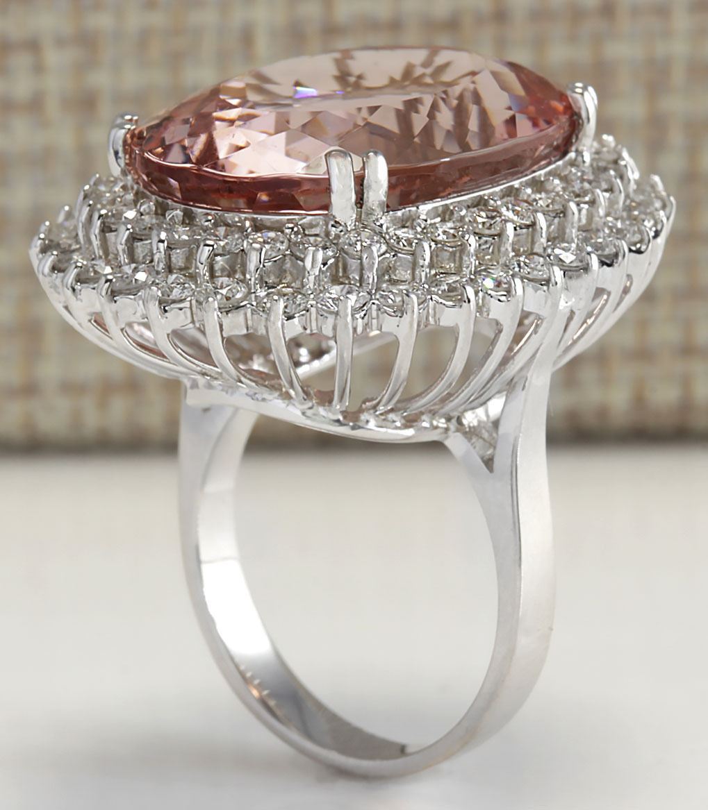 27.54 CTW Natural Peach Morganite And Diamond Ring In 18K Solid White Gold