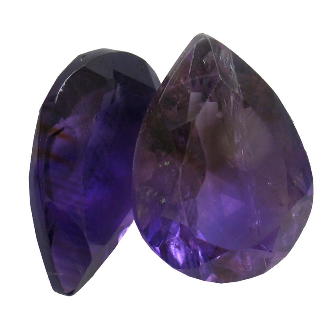 Two pear mixed cut natural amethysts exact total weight 27.76ct., clarity is slightly included, type II, medium dark, very slightly grayish, purple color, (GIA P 6/3), cut is good. Westfield Appraised at $1,025.00.