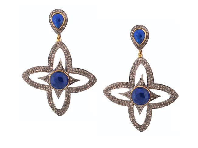LAPIZ AND DIAMOND EARING-FLOWER SHAPE/**/Diamond Count1:/Diamond 1 CTW:9.25/Diamond Color & Clarity:SINGLE CUT J-L/I1-12/Diamond Count 2:/Diamond 2 CTW:/Diamond Color & Clarity:/Gemstone Count1:/Gemstone 1 CTW:18.55/Gemstone Count 2:/Gemstone 2 CTW:/Metal Type 1 Gold:14K GOLD/Gold Gram Weight:3/Metal Type 2:over 0.925 Sterling Silver /Silver Gram Weight:16.26/Gross Weight:24.82