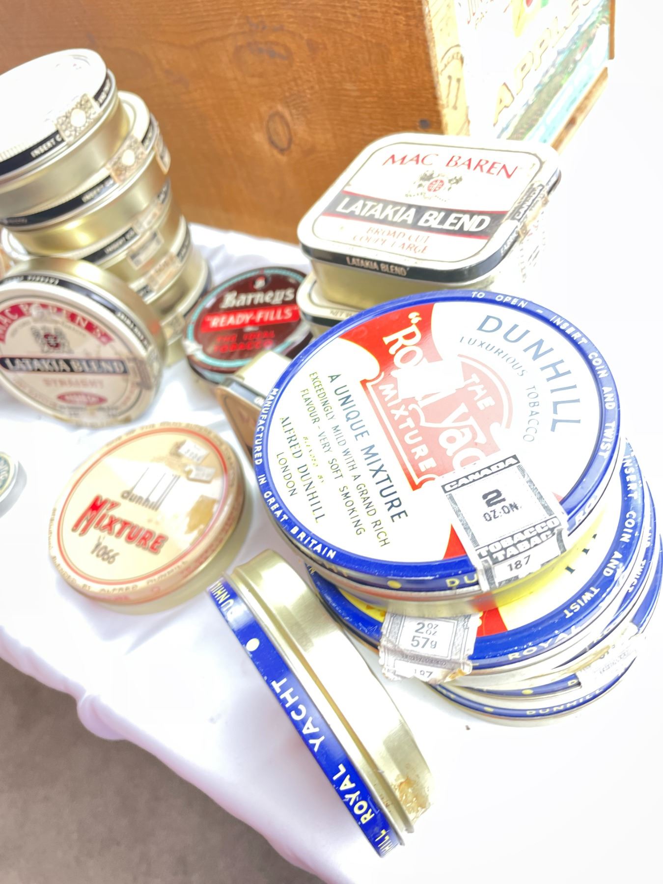 Includes tobacco tins