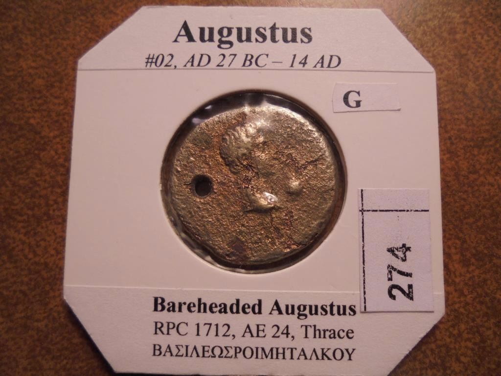 27 B.C.-14 A.D. AUGUSTUS ANCIENT COIN HOLED