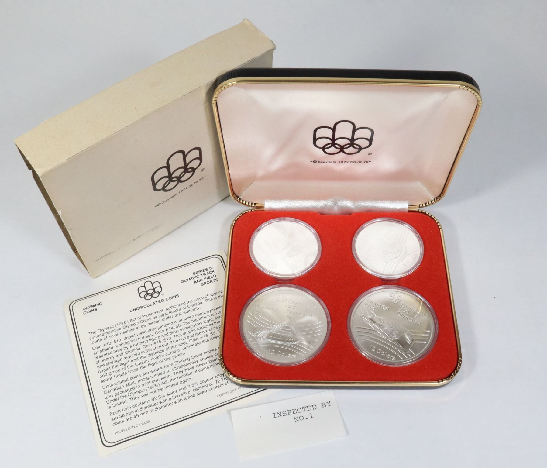 SET 4 COINS $5 + $10 COINS CASED CANADA TRACK & FIELD