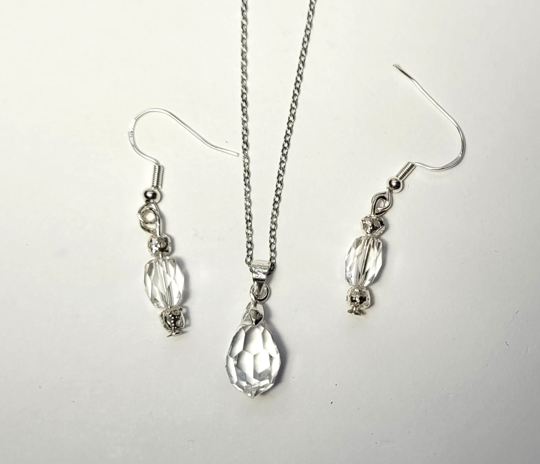 SWAROVSKI CRYSTAL PENDANT ON 18" CHAIN & MATCHING DROP EARRINGS ON 925 STAMPED FISHHOOK WIRES.