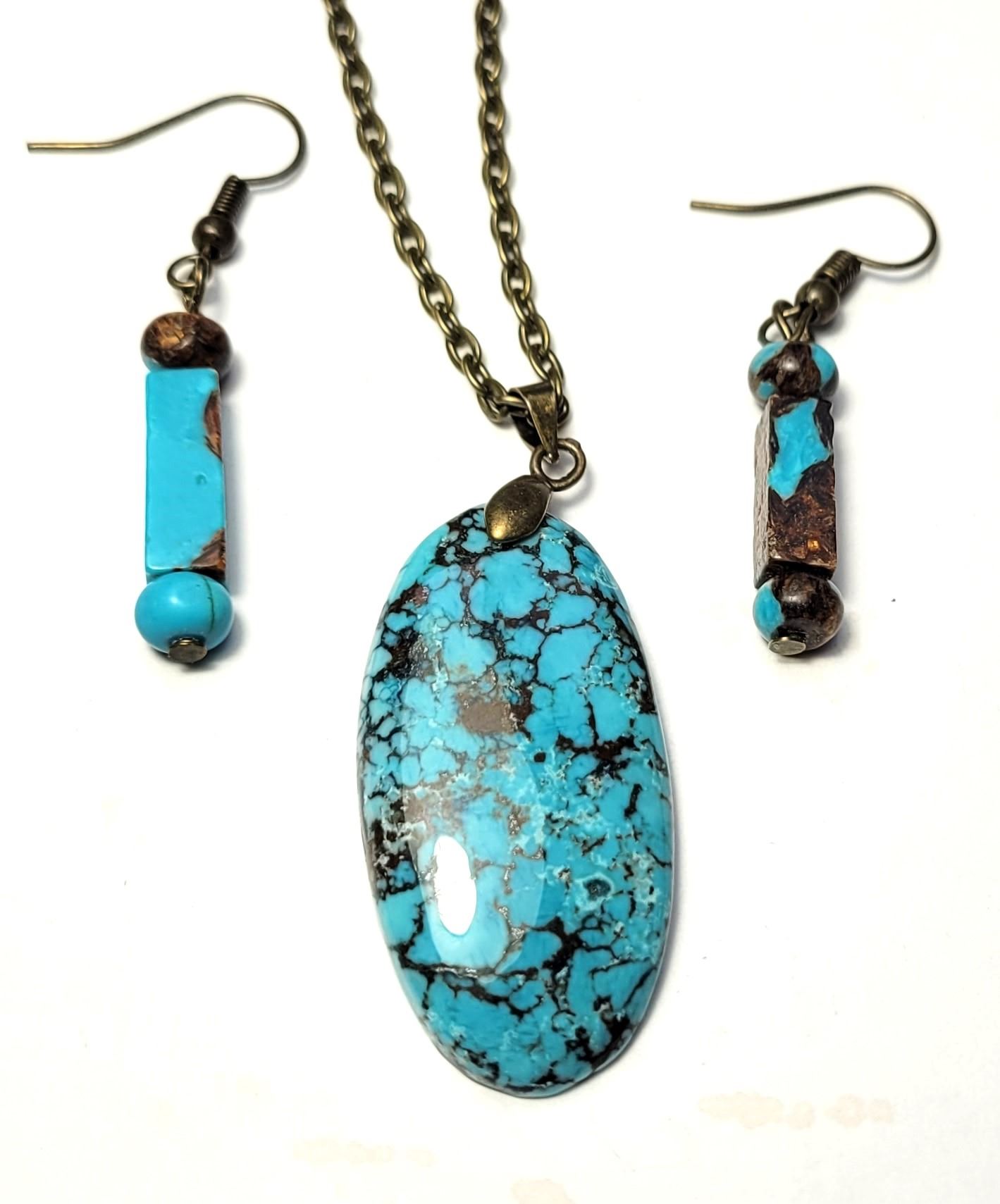 PENDANT ON 18" BRONZE CHAIN & COORDINATING DROP EARRINGS. JEWELERY