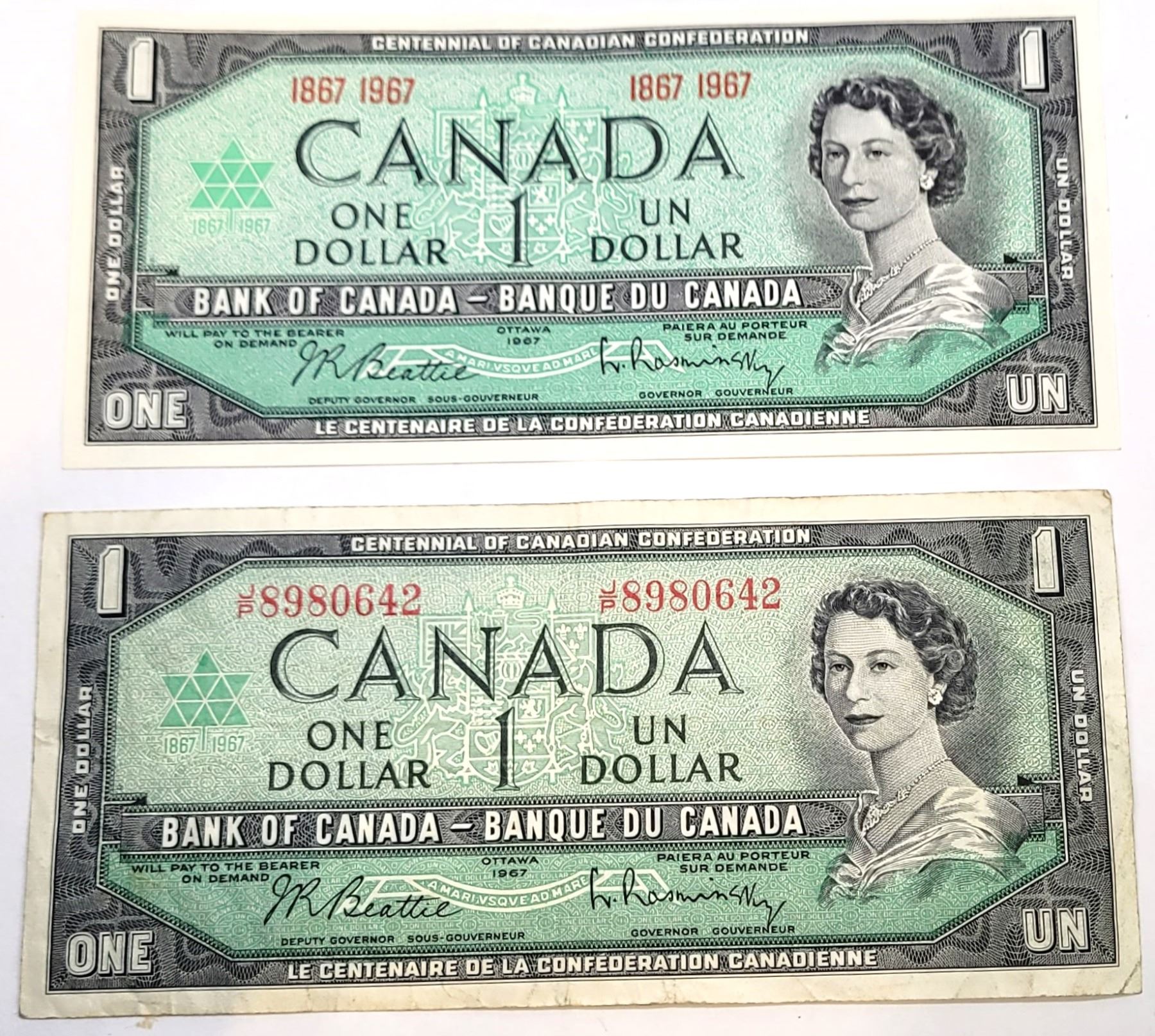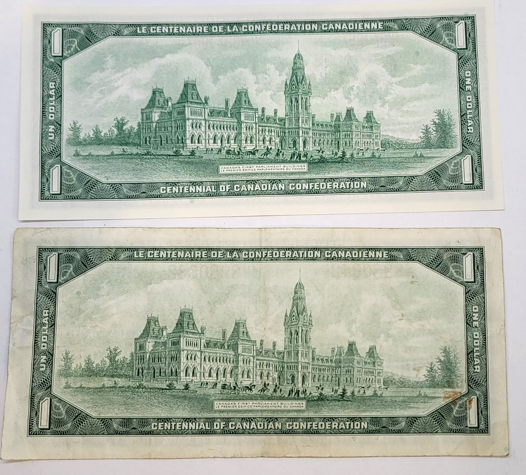 27) LOT OF 2 CANADIAN CENTENNIAL $1.00 BANKNOTES,