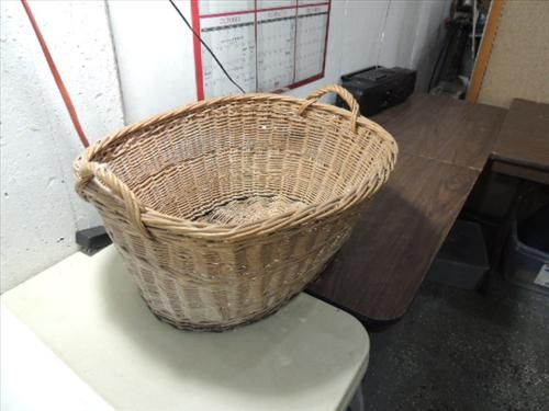 27" OVAL VINTAGE REDD WOVEN CLOTHES BASKET. COULD USE SOME CLEANING. AS SHOWN. VIEW PICTURE FOR DETAIL.