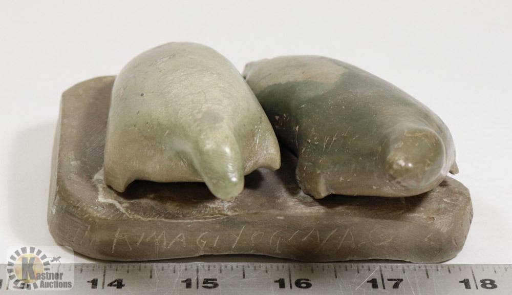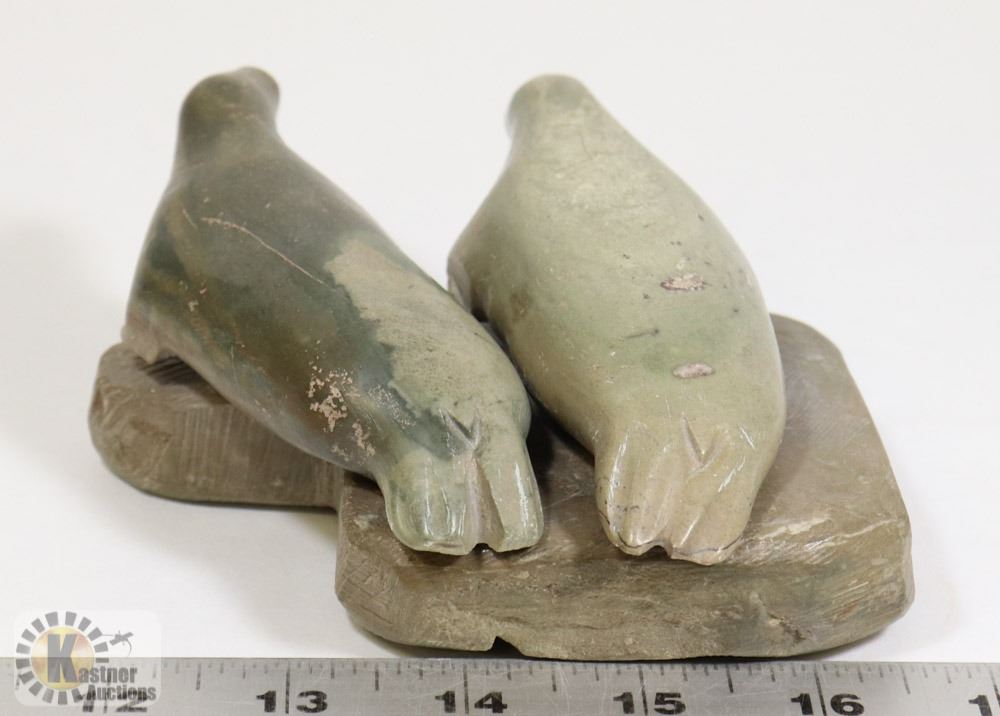 27) PAIR OF INUK SOAPSTONE SEALS, SIGNED