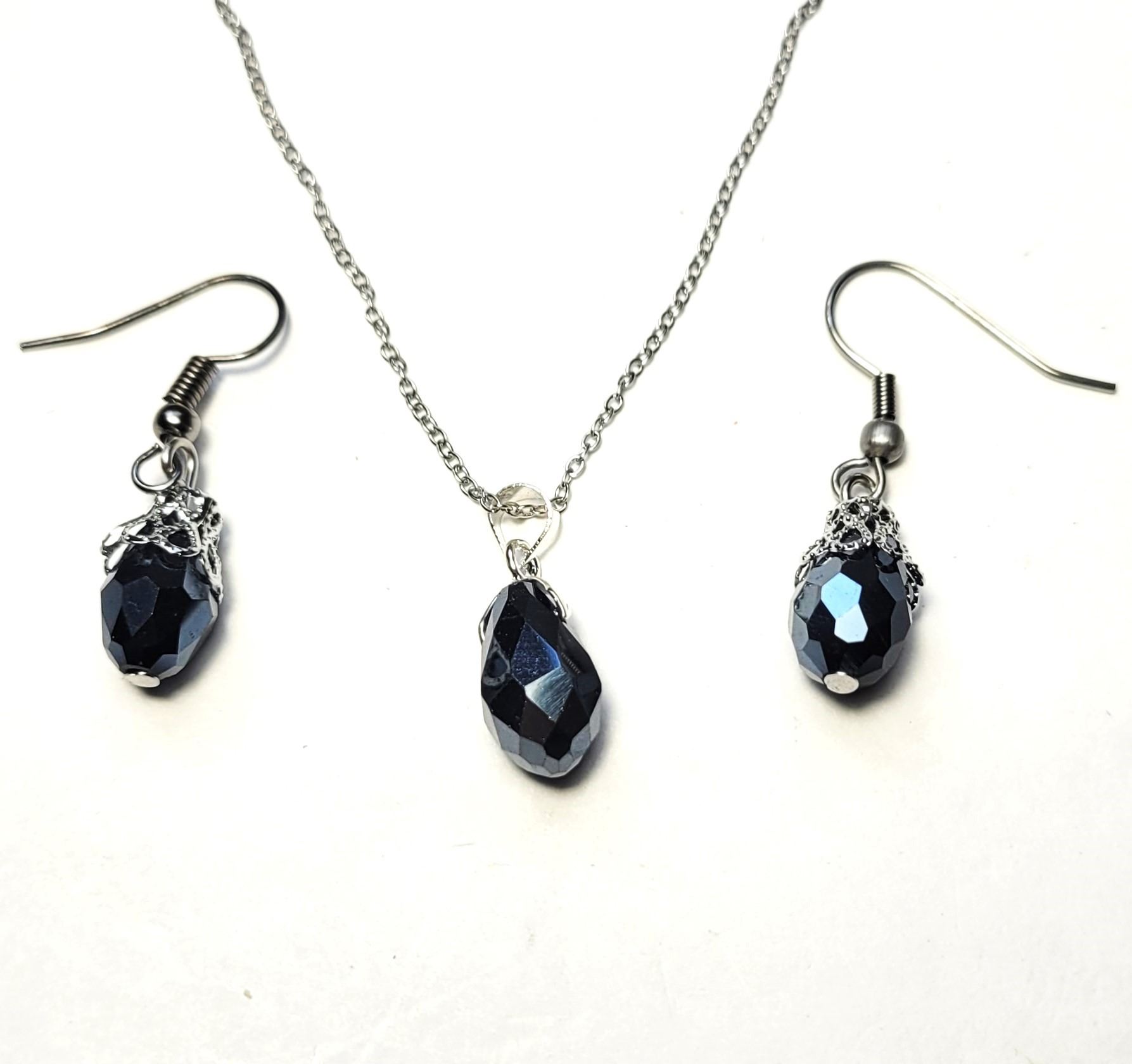 PENDANT ON 18" CHAIN AND DROP EARRINGS. JEWELERY