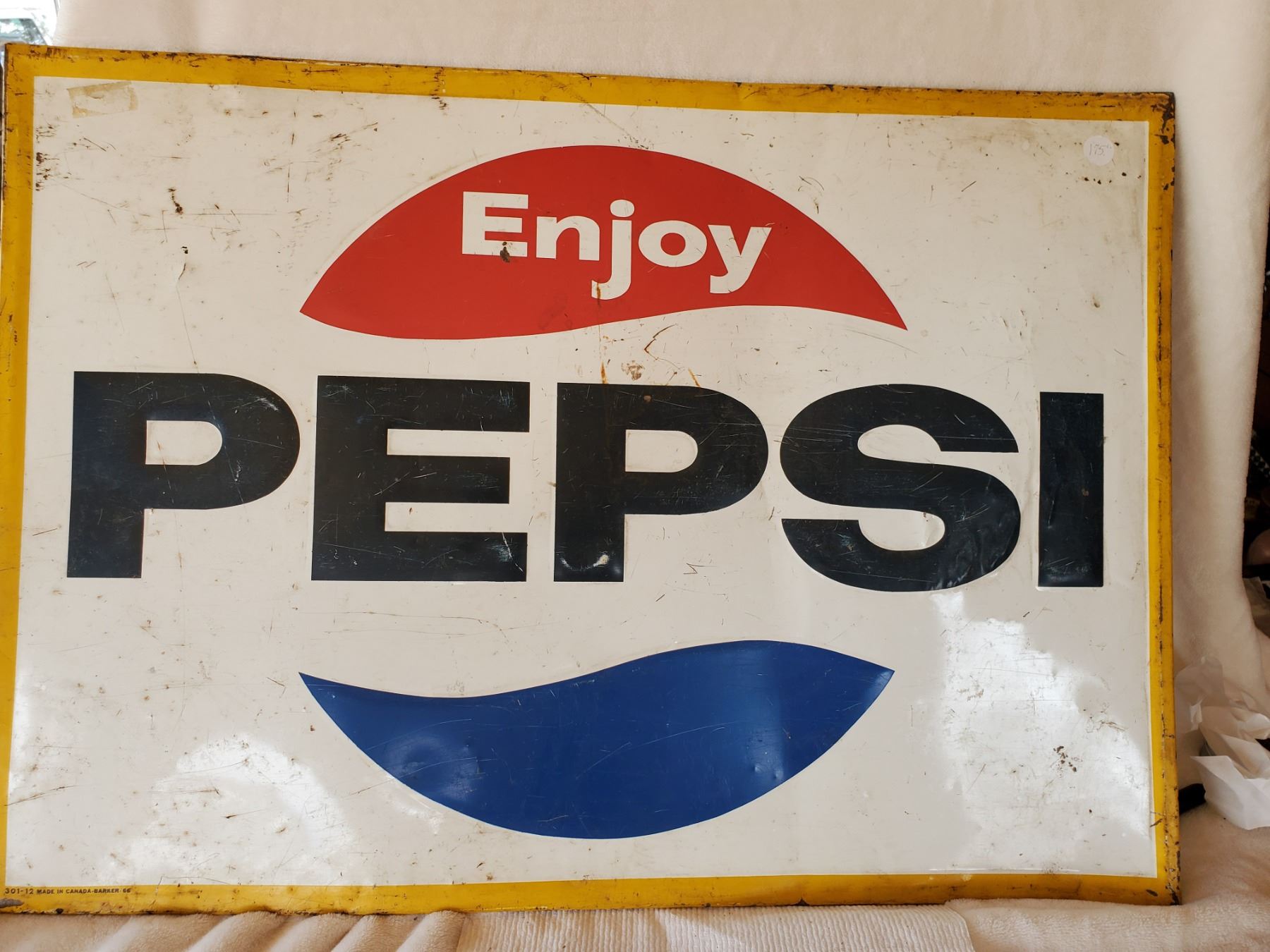 27"X20" 1966 ENJOY PEPSI TIN SIGN