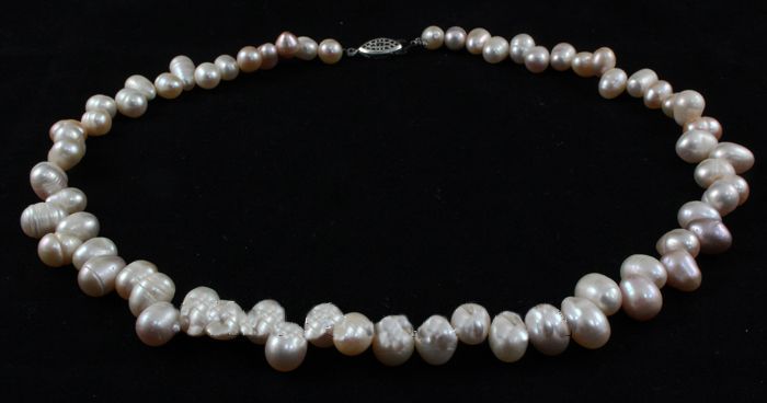270.12CTW 16" WHITE-PEACH FRESHWATER PEARL NECKLACE MET **|**|** 270.12CTW 16" WHITE-PEACH FRESHWATER PEARL NECKLACE METAL LOCK PHILIPPINES ; MSRP: $200