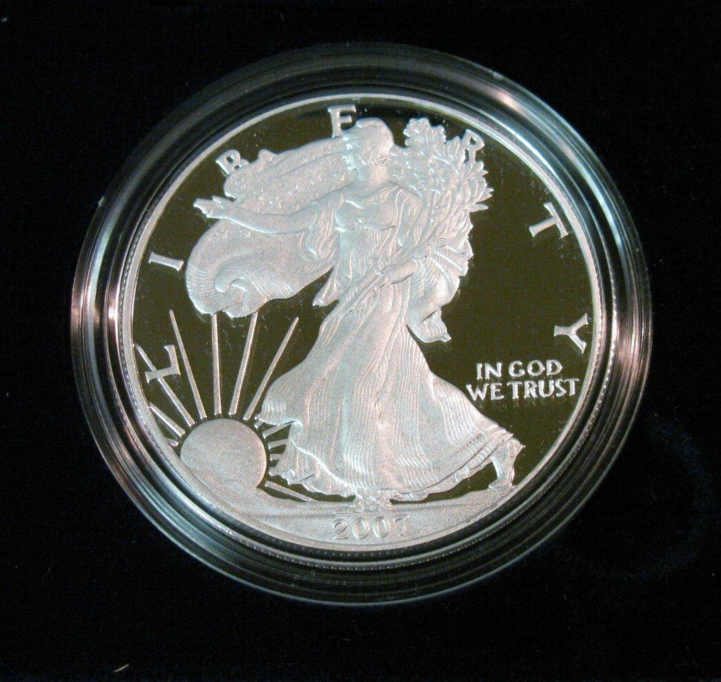 270. 2007 W American Eagle Proof Dollar in original case of issue with literature.