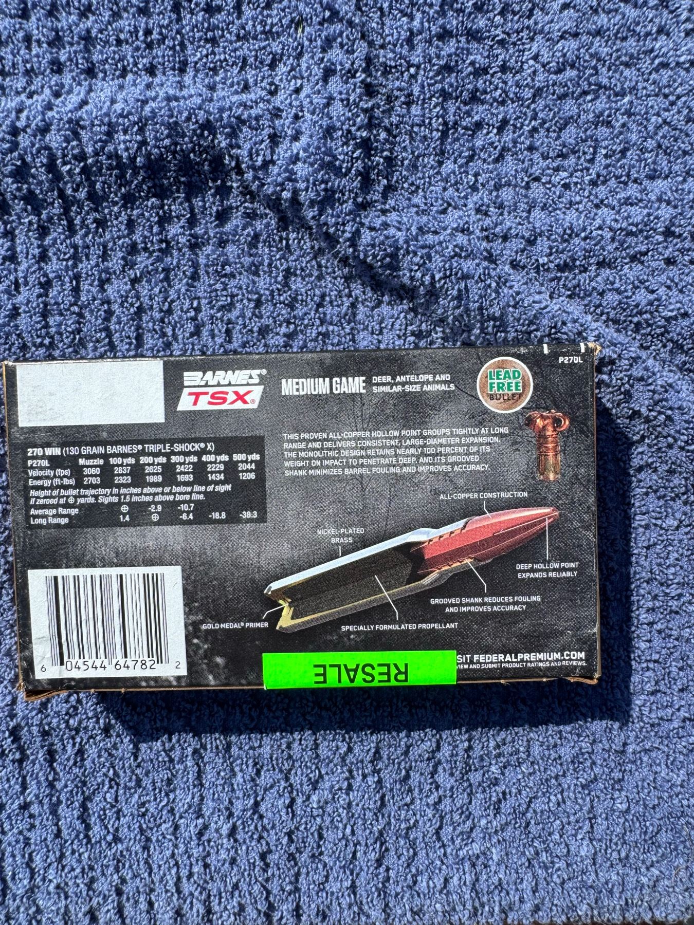 270 WIN FEDERAL PREMIUM BARNES TRIPLE SHOCK X (TSX) (INTERNAL REFERENCE: F)