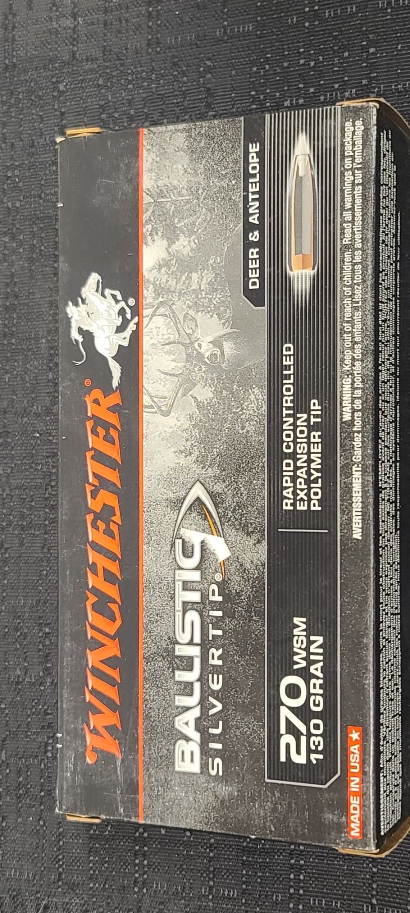 270 WSM 130GR WINCHESTER BALLISTIC SIPLVER TIP. RAPID CONTROLLED EXPANSION POLYER TIP (20RNDS)