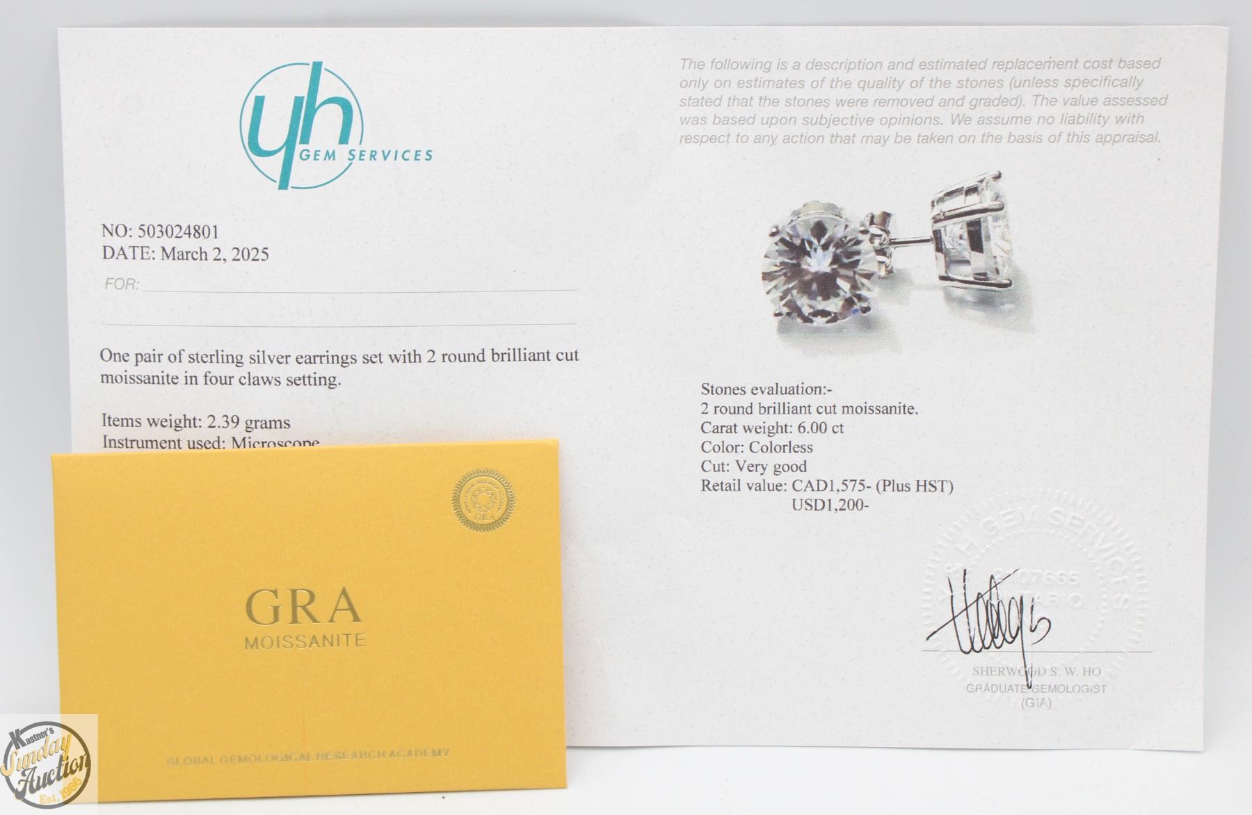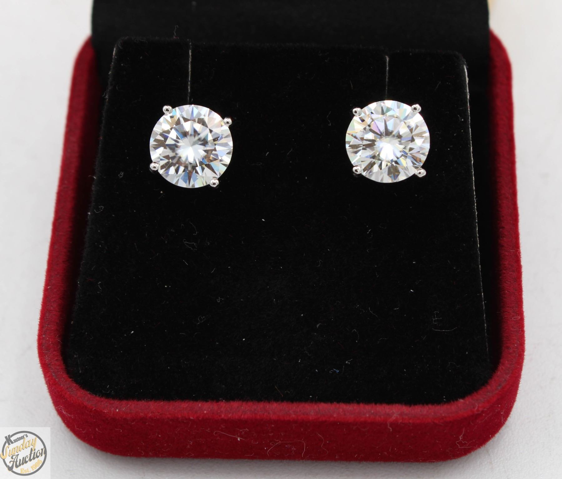 MOISSANITE STONES VVS D COLOR SET IN 4 CLAW BASKET HEAD SET IN 925 SILVER EARRINGS RETAIL VALUE $1,150.00 **ALL ITEMS MUST BE REMOVED BY 5PM SATURDAY, JUNE 14TH 2025. ALL REMAINING ITEMS WILL BE SUBJECT TO A $6.00 PER DAY STORAGE CHARGE. ANY ITEMS REMAINING AFTER MONDAY, JUNE 30TH, 2025 WILL BE CONSIDERED FORFEITED. NO REFUNDS WILL BE ISSUED FOR FORFEITED ITEMS. TO SCHEDULE A PICK UP APPOINTMENT CLICK HERE
