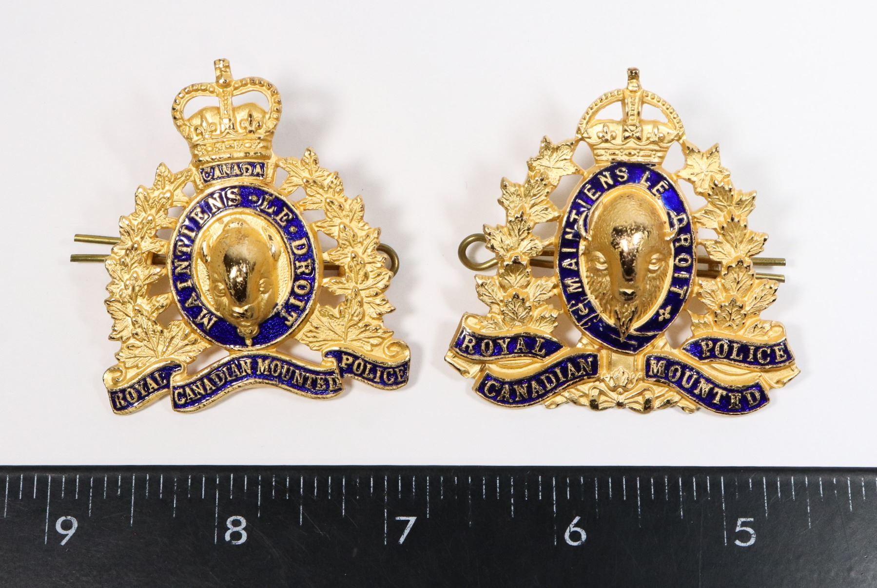 INCLUDES 2 OF 4 BADGES FROM 1974 CENTENNIAL SET INCLUDING KINGS CROWN RCMP AND QUEEN ELIZABETH II QEII CROWN CAP BADGE ROYAL CANADIAN MOUNTED POLICE CENTENNIAL 100TH ANNIVERSARY BADGE SET PRODUCED BY GAUNT