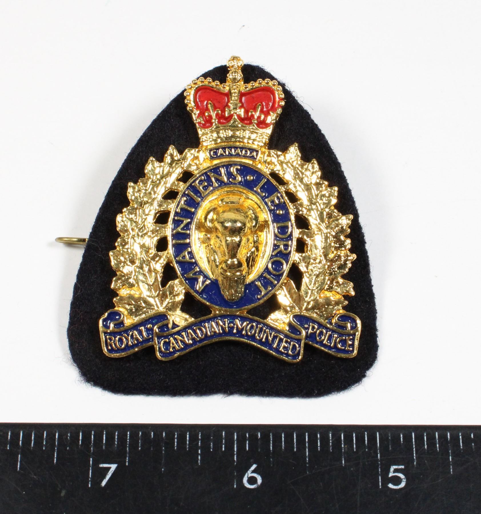 SOLID BACK VARIATION WITH CLOTH BACKING COMPLETE WITH LUGS ON REVERSE RCMP ROYAL CANADIAN MOUNTED POLICE CANADA LAW ENFORCEMENT 20TH CENTURY 1900'S QEII QUEEN ELIZABETH II ERA