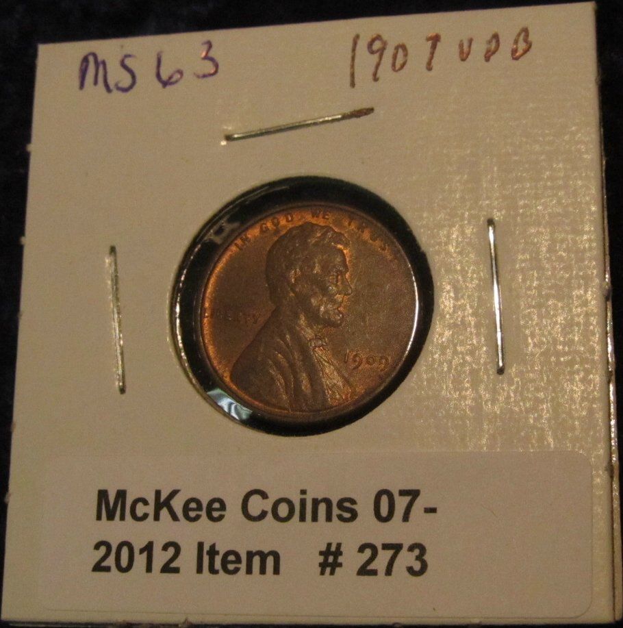 273. 1909 P VDB Lincoln Cent. Partially Red Unc.