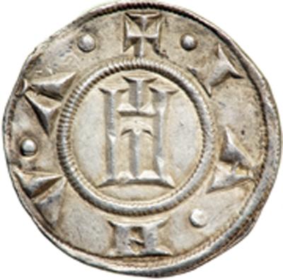 Italian States - Genoa. Grosso of 6 denari, Nd. Biaggi-838. 1.67 grams. Republic, 1139-1339. Cross within circle. Leg: CVNRADI REX. Reverse Castle. Leg: +. IA. NV. A. Extremely Fine.