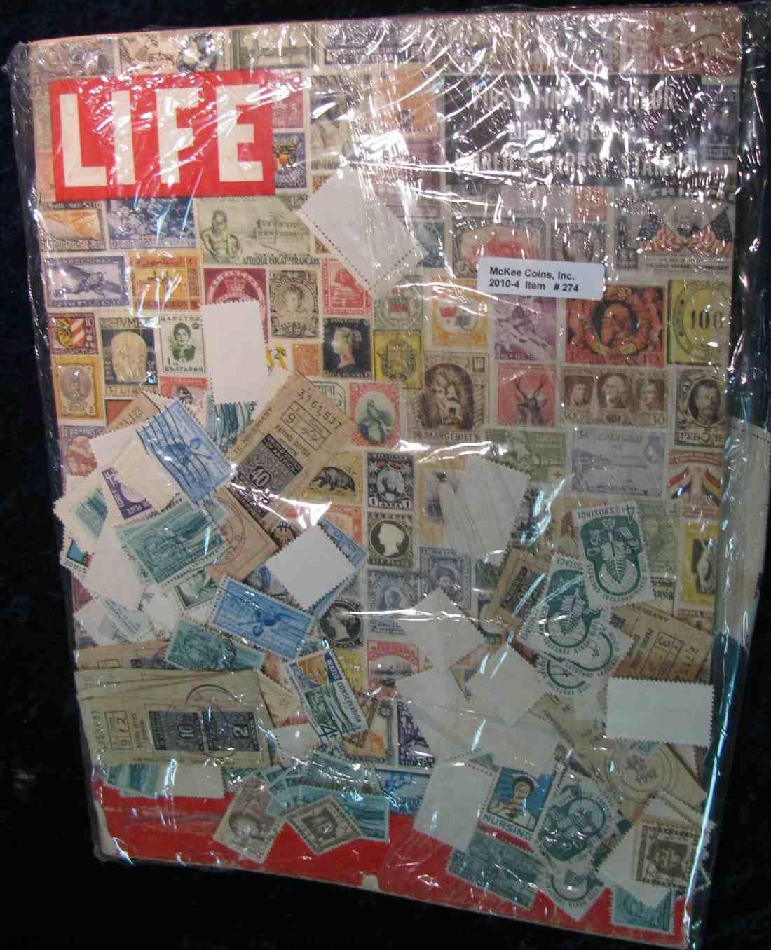 274. May 3, 1954 Edition of "Life" Magazine with cover illustrating hundreds of postage stamps. Also, included is a large hoard of cancelled postage stamps.