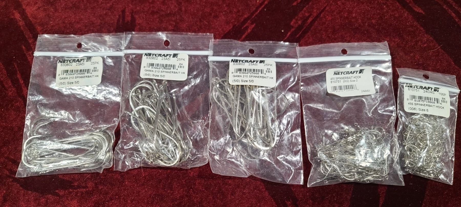 275 JANNS NETCRAFT SPINNER BAIT HOOKS QTY75 GAMMA 210 SPINNER BAIT HOOKS SIZE 5/0 - 100 SIZE 455 SIZE 2 AND 100 455 SIZE 6
