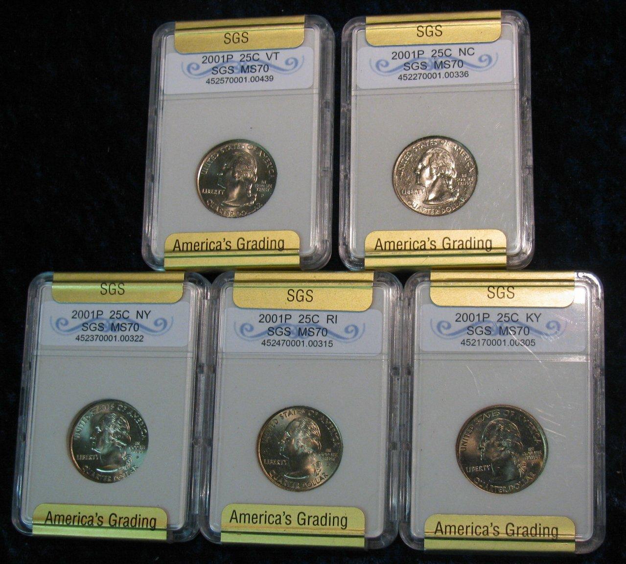 276. All (5) 2001P State Quarters SGS slabbed MS 70. Est. Value $125.00.
