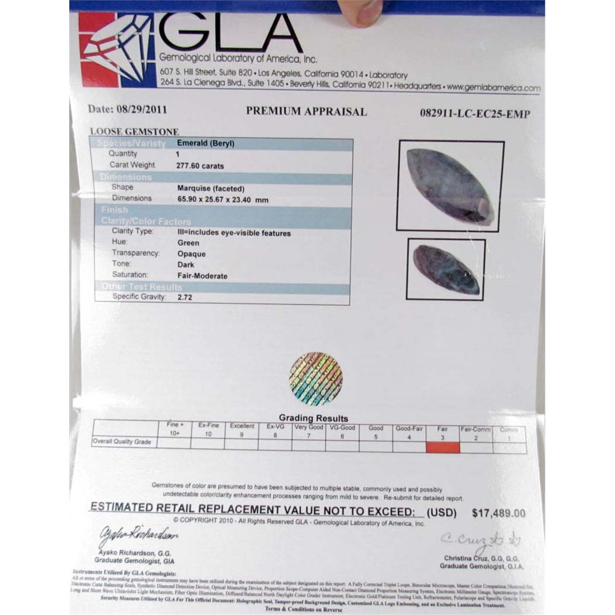 Comes w/ GLA Appraisal of $17,489.00