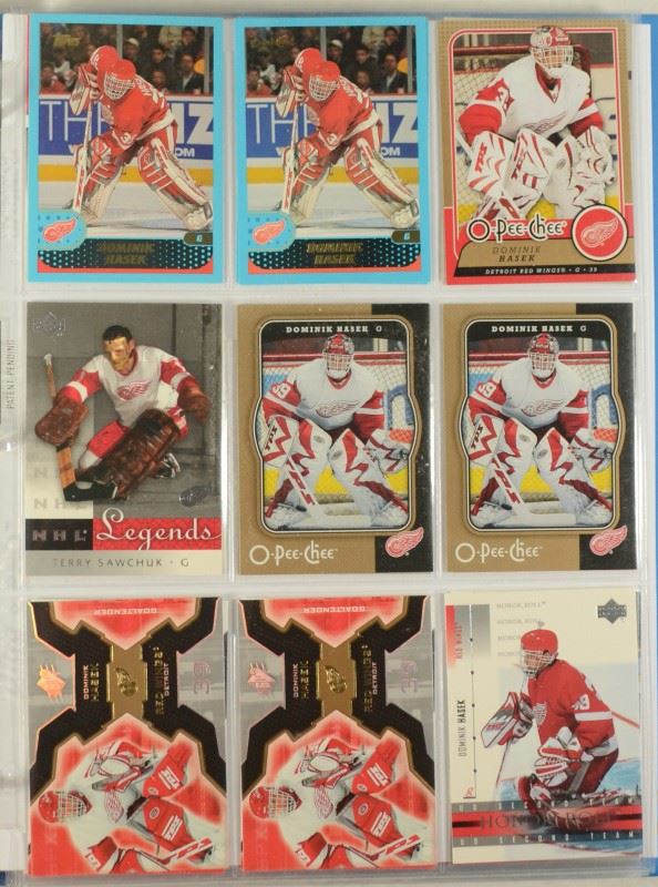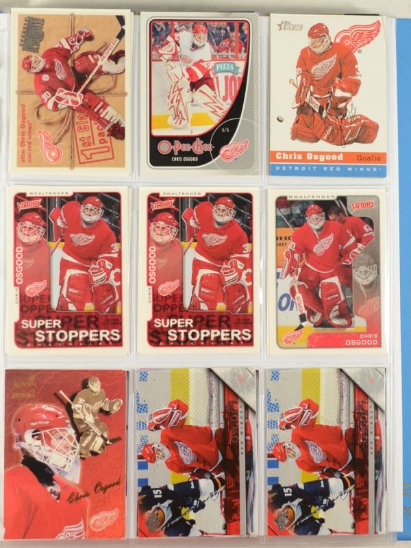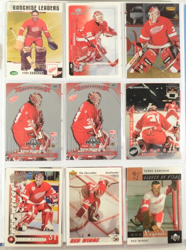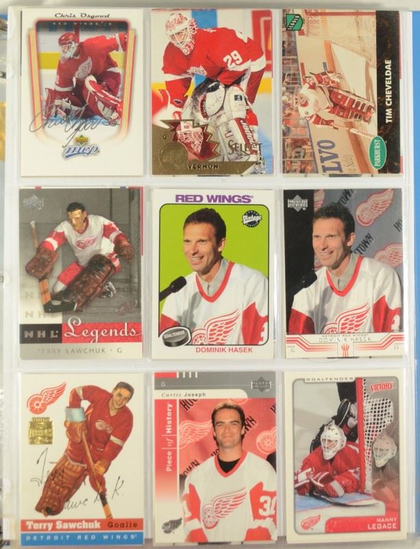 277 RED WINGS GOALIES CARDS -- in binder. HASEK, OSGOOD, SAWCHUK, JOSEPH