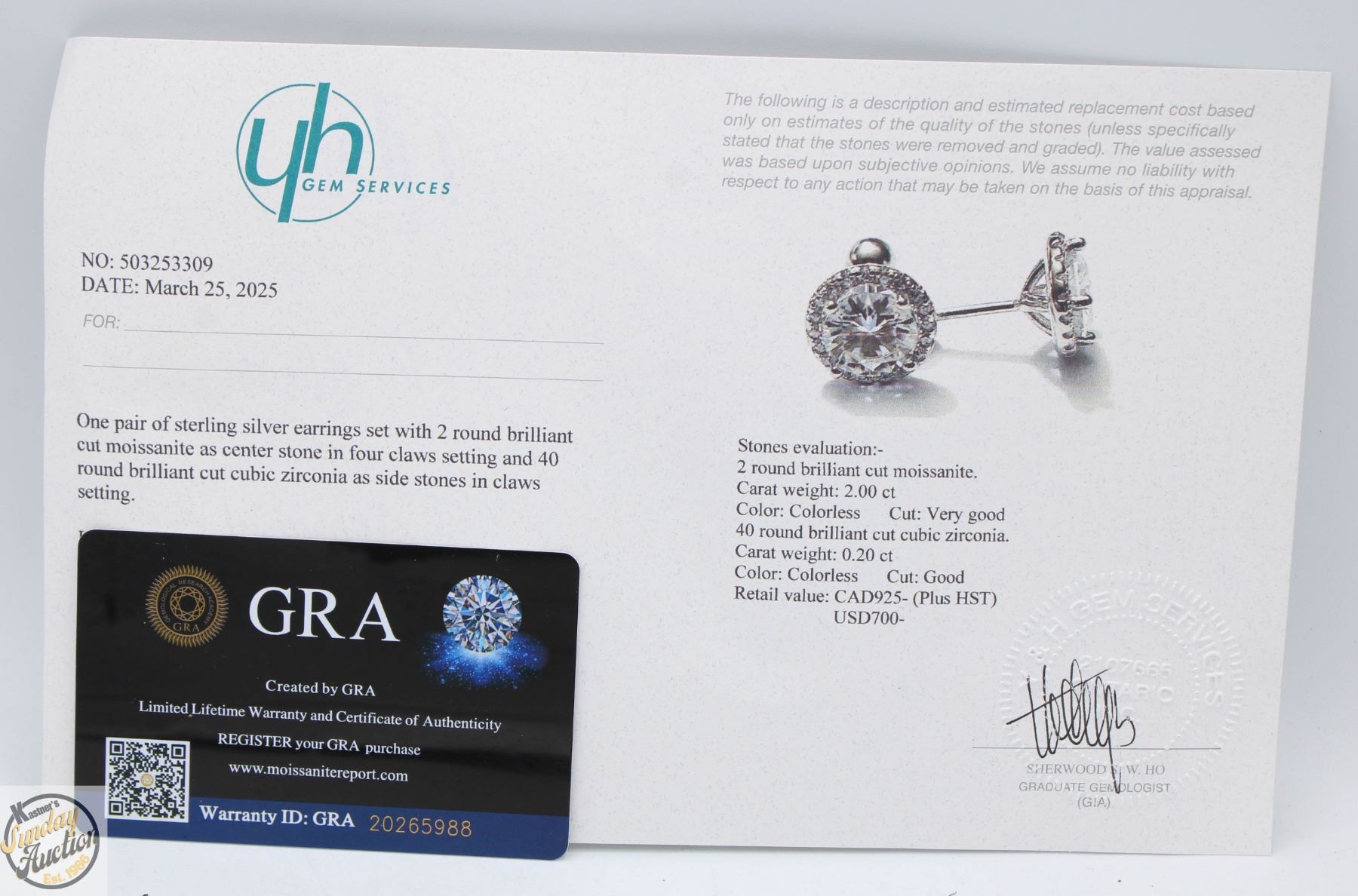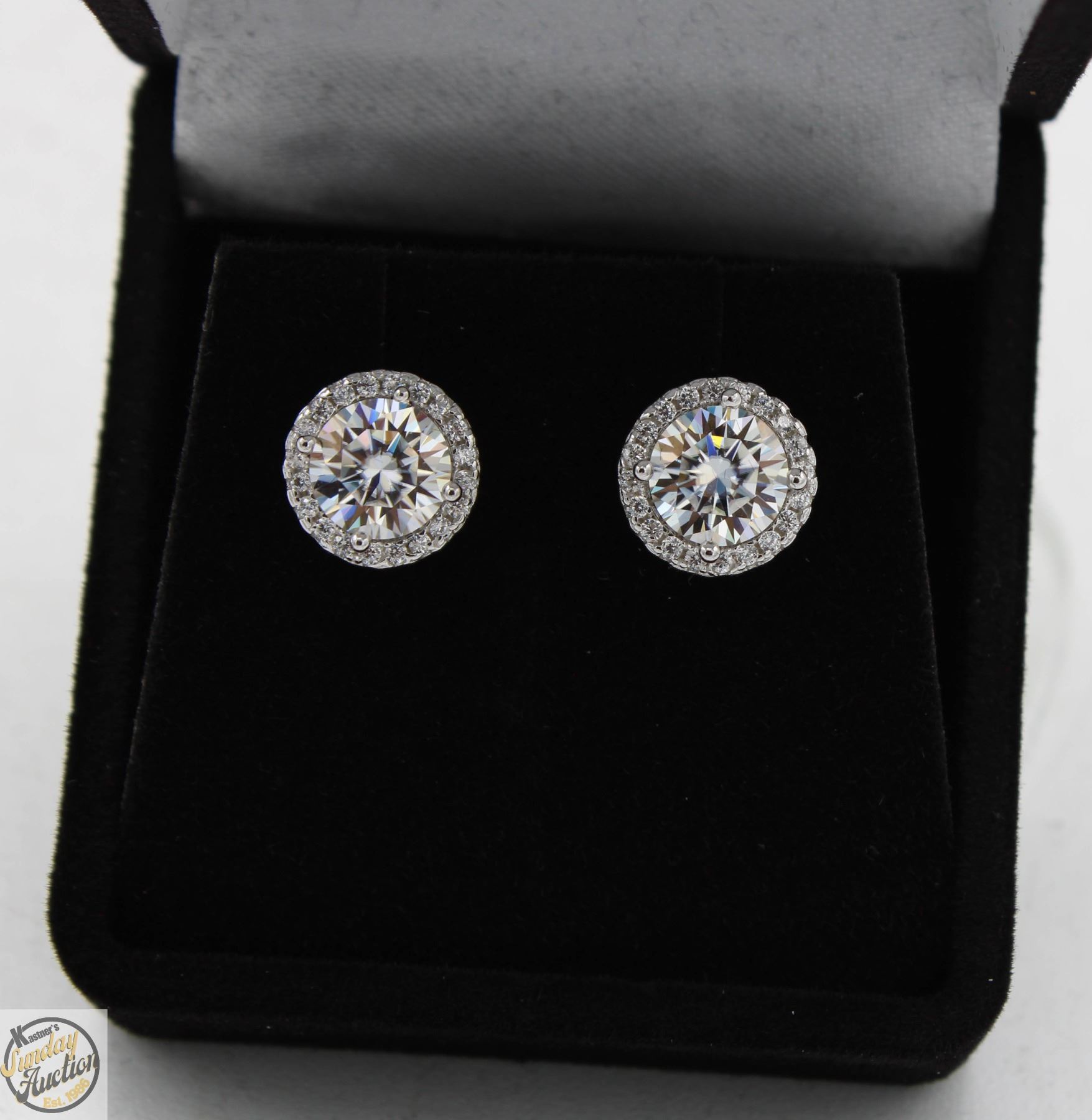 MOISSANITE STONES VVS D COLOR WITH 40 ROUND BRILLIANT CUT CUBIC ZIRCONIA SET IN ROUND HALOS SET IN 925 SILVER EARRINGS WITH SCREW BACKS RETAIL VALUE $925.00 **ALL ITEMS MUST BE REMOVED BY 5PM SATURDAY, JUNE 28th 2025. ALL REMAINING ITEMS WILL BE SUBJECT TO A $6.00 PER DAY STORAGE CHARGE. ANY ITEMS REMAINING AFTER MONDAY, JULY 14TH 2025 WILL BE CONSIDERED FORFEITED. NO REFUNDS WILL BE ISSUED FOR FORFEITED ITEMS. TO SCHEDULE A PICK UP APPOINTMENT CLICK HERE