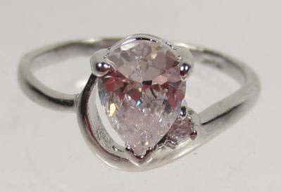 2789 - 14K WHITE GOLD PLATED RING W/ WHITE TOPAZ - SIZE 8