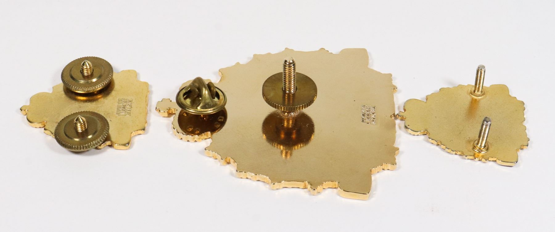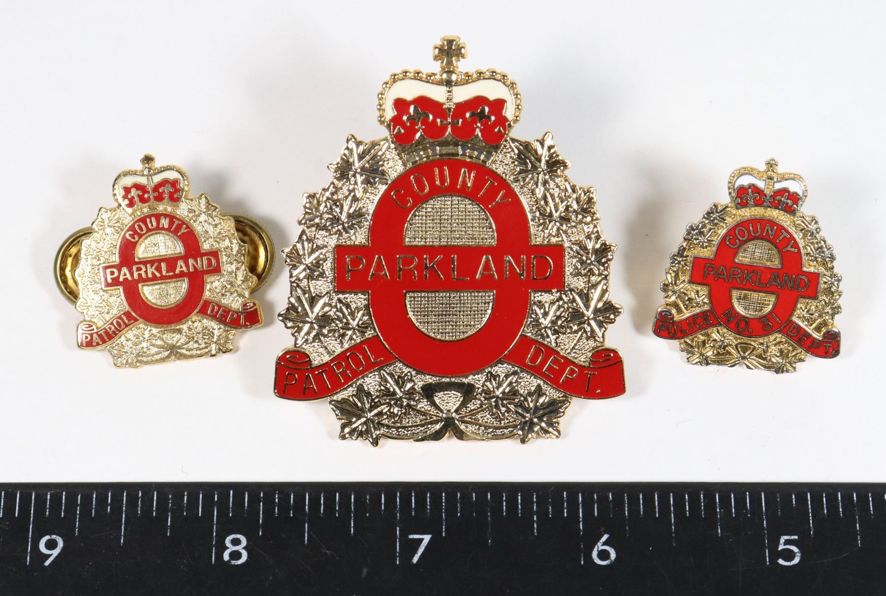 COLLAR BADGES CAP BADGE MAKER MARKED JUNIPER LACOMBE ALBERTA ON REVERSE VINTAGE CANADA CANADIAN POLICE LAW ENFORCEMENT CAP BADGE INSIGNIA