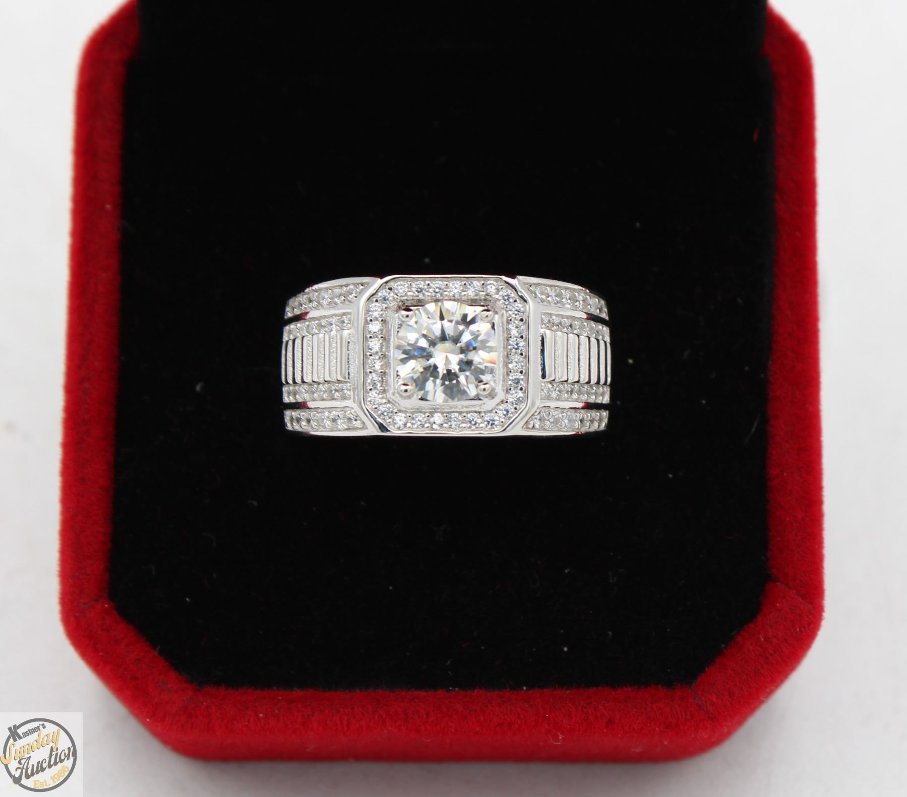 MOISSANITE STONE VVS D COLOR WITH 84 ROUND BRILLIANT CUT CUBIC ZIRCONIA SET IN SQUARE HALO AND SET IN THE SHANKS SET IN 925 SILVER RING SIZE 9 RETAIL VALUE $1,200.00**ALL ITEMS MUST BE REMOVED BY 5PM SATURDAY, JULY 19TH 2025. ALL REMAINING ITEMS WILL BE SUBJECT TO A $6.00 PER DAY STORAGE CHARGE. ANY ITEMS REMAINING AFTER MONDAY, AUGUST 4TH, 2025 WILL BE CONSIDERED FORFEITED. NO REFUNDS WILL BE ISSUED FOR FORFEITED ITEMS. TO SCHEDULE A PICK UP APPOINTMENT CLICK HERE