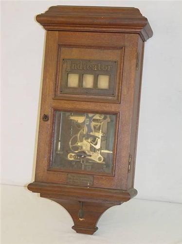 27" GAMEWELL 3 DIGIT OAK CASED INDICATOR W/ WIND-UP KEY - WOOD RESET, HANDLE DETACHED;